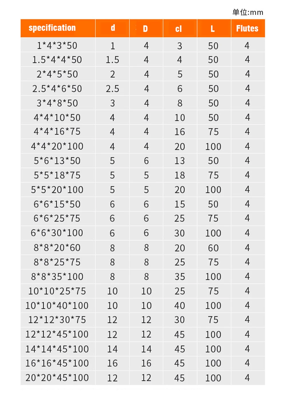 Концевая фреза из карбида HRC65, с 4 канавками, 20 мм