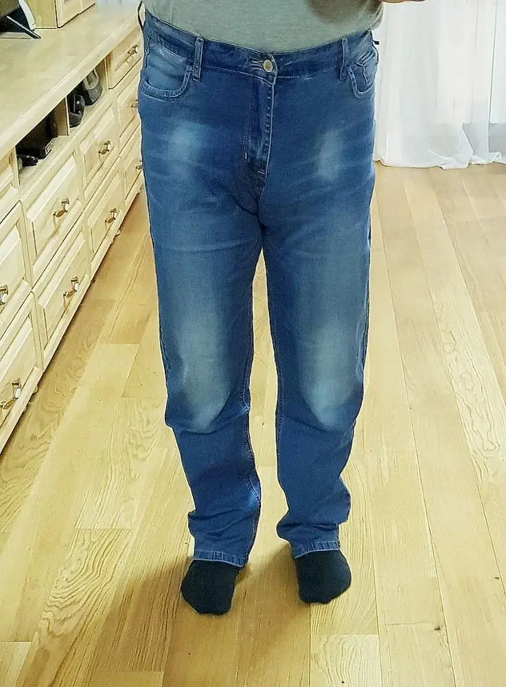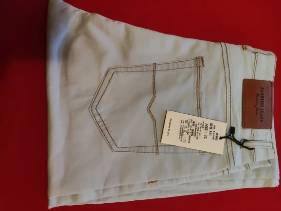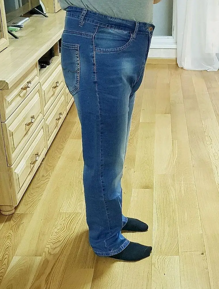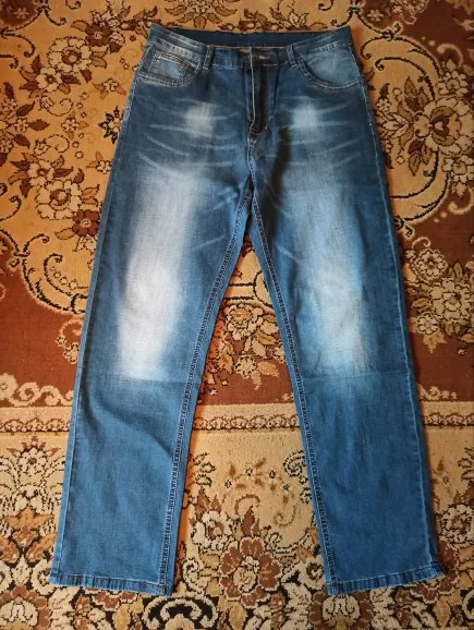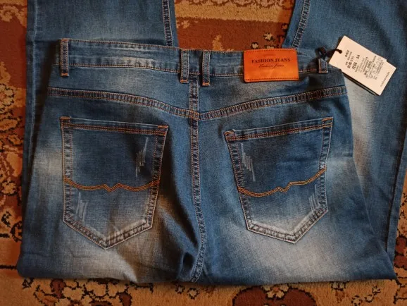 Хорошие недорогие джинсы. Взял разные модели одного производителя. Конкретно эти из лёгкой "летней" ткани и светлые с "потёртостями". Рассчитаны на рост около 180 см (размер 52 по нашей классификации). Мне придётся немного подворачивать снизу, а во всём остальном - норма! Хорошо облегают, включая пузо :-). Размер полностью соответствует обмерам по предложенной таблице. Доставили за 10 дней в Москву в одной посылке со второй парой. Только, не на почту, в пункт доставки в "Пятёрочке" - на кассе! - и это ошибка, ребята! Отдельный кошмарный квест - не повторяйте его, сохраняйте психику в норме. Лучше внимательно выбирайте тот вариант доставки, который вам удобнее, а не "по-умолчанию". А товар хороший - рекомендую!