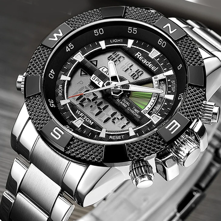 Спортивные мужские часы с хронографом Readeel, Цифровые кварцевые часы, стальные мужские наручные часы, мужские Модные подарочные часы для мужчин