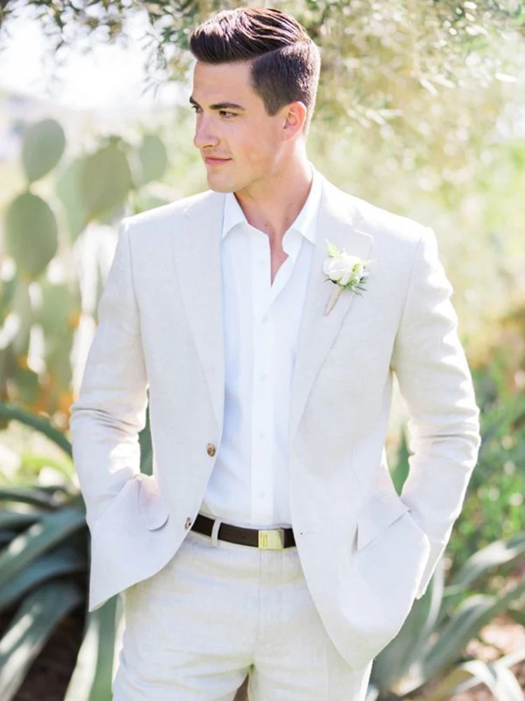 ANNIEBRITNEY Summer Ivory Linen Men Suit With Pants