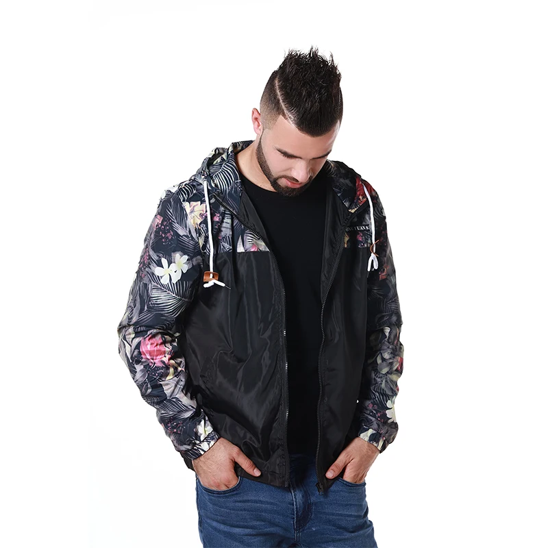 Куртка мужская с капюшоном, ветровка с цветочным принтом, Повседнев...