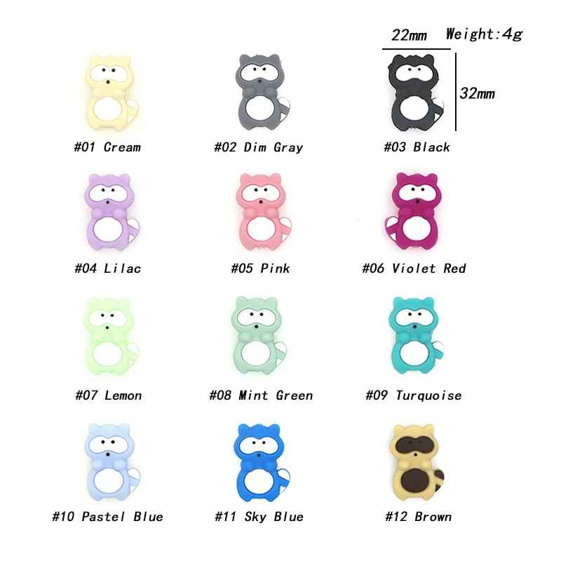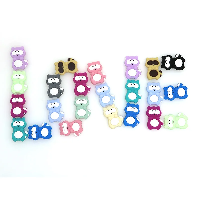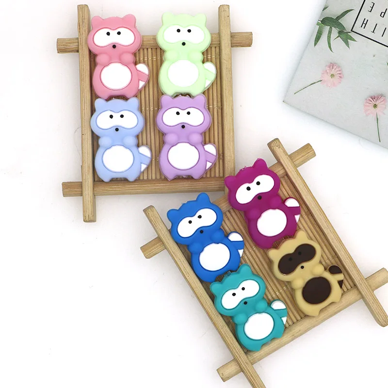 Бусины силиконовые в виде енота, для прорезывателя зубов, для сосок...