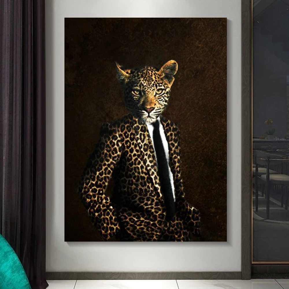 Винтажный портрет кошки собаки коровы, настенная Картина на холсте,...