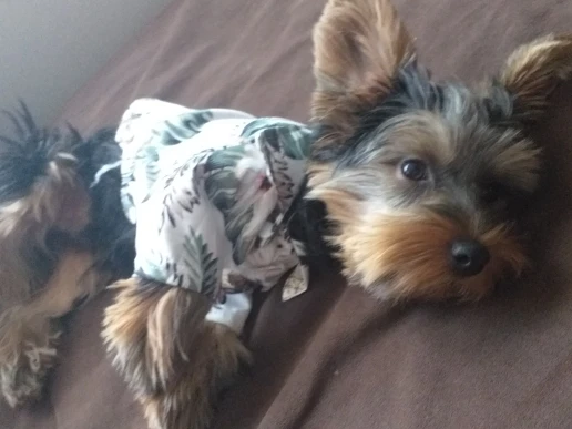 Рубашка сделана из тонкой ткани. Это на лето. И размер, потому что это XL для моей собаки, он немного маленький, но я знаю, что это потому, что у него большой сундук по отношению к корме. Но я все равно надену это .. Ах! Ткань жесткая, не имеет расширения.