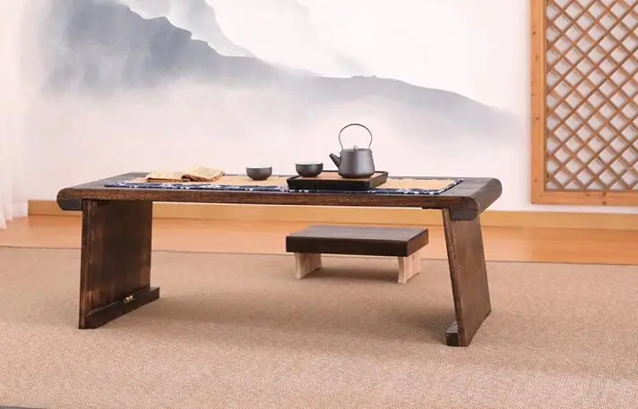 Креативный Японский складной чайный столик из цельного дерева, украшение, складной многофункциональный портативный журнальный столик с окошком для кровати