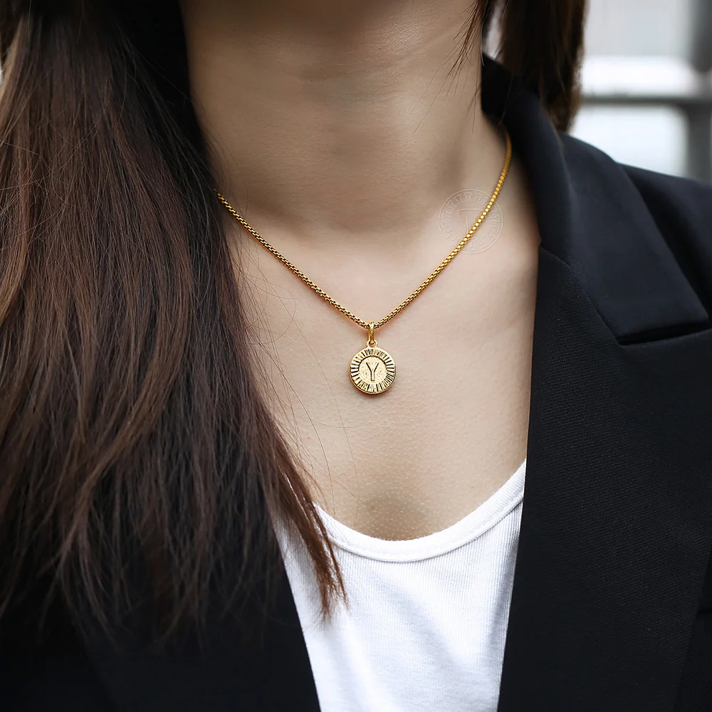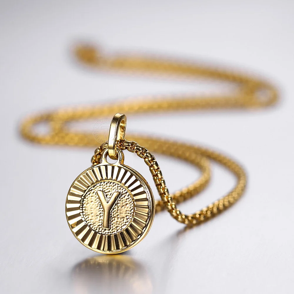 Ожерелье с подвеской в виде буквы инициала для женщин и мужчин, изящная круглая цепочка из нержавеющей стали под золото, подарочное ювелирное изделие, GP418A