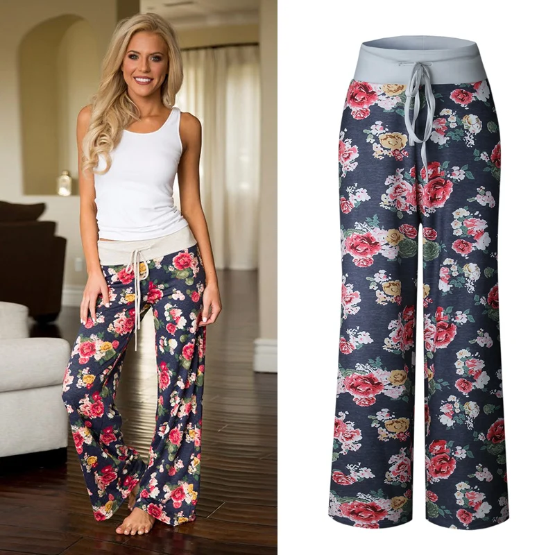 Женские Длинные Хлопковые Штаны с оборками и цветочным рисунком, домашние пижамы, Мягкие штаны на шнурке, джоггеры, штаны для бега и танцев