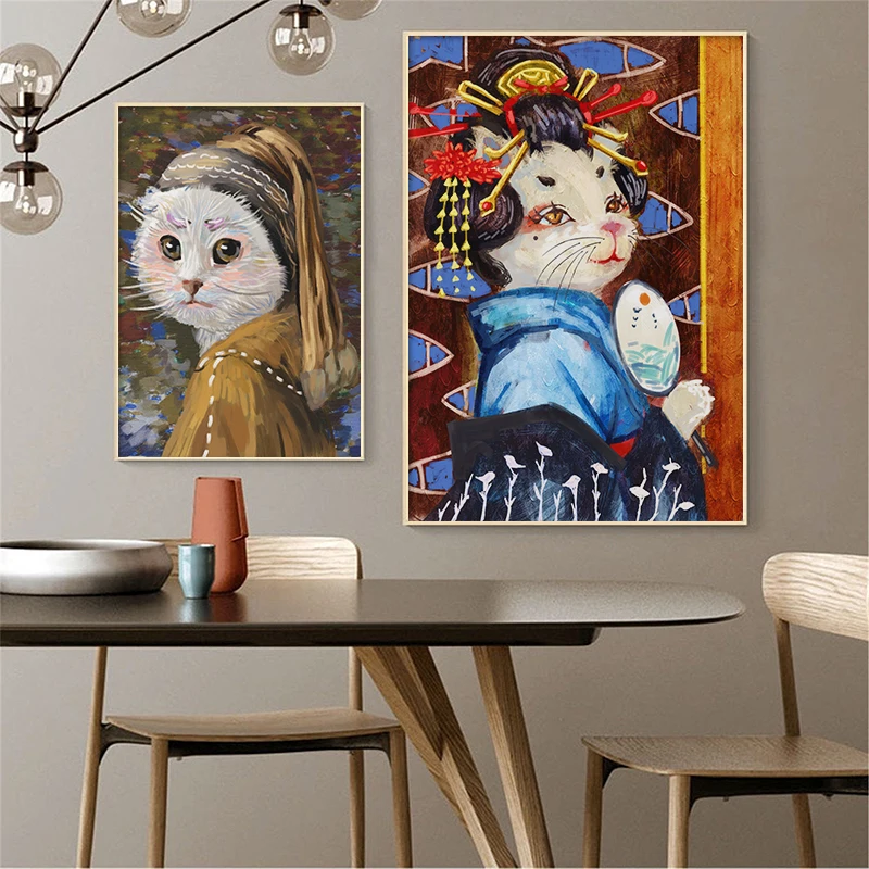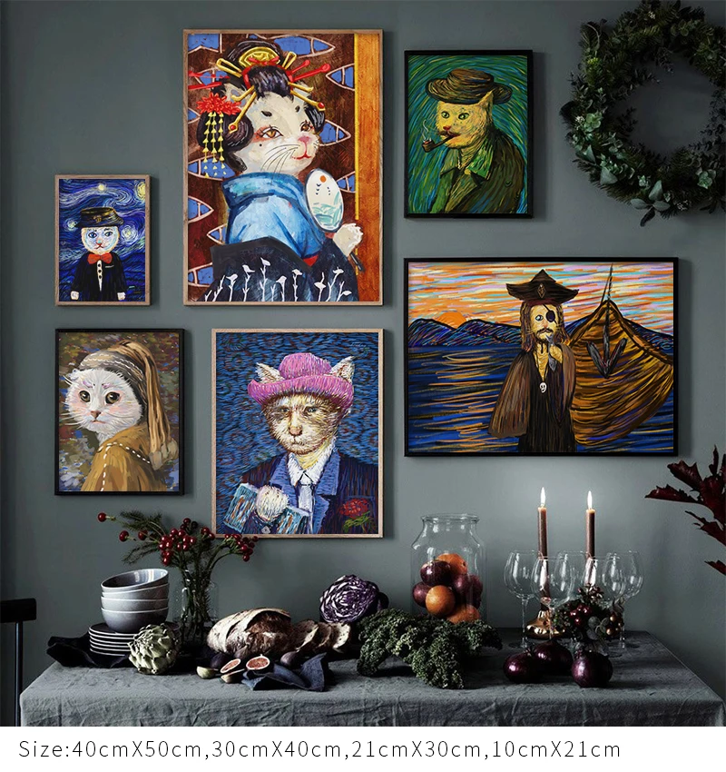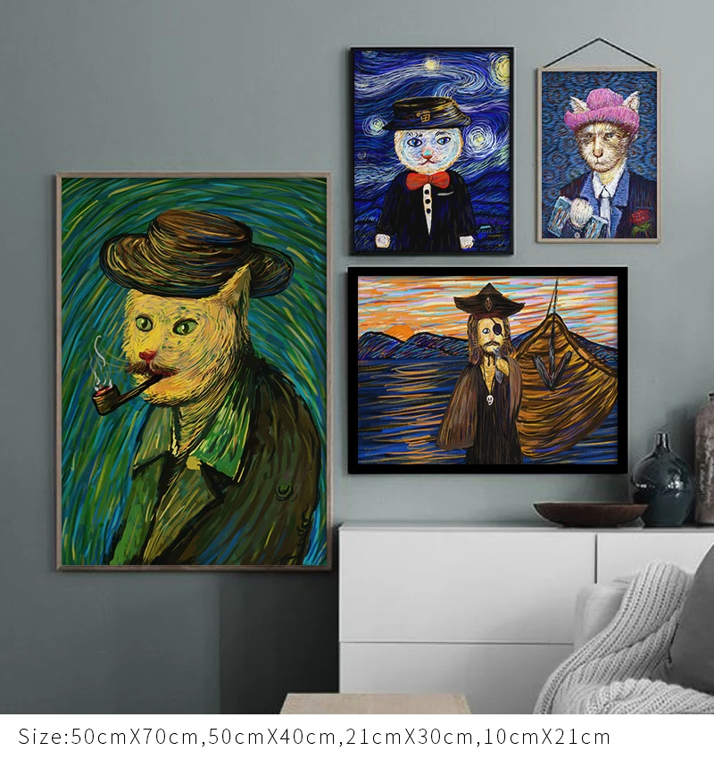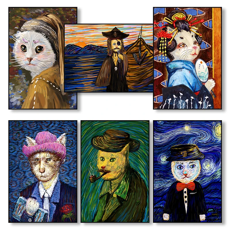 Кошка Ван Гог, современное искусство, мультфильм, постеры и принты, Картина на холсте, настенные картины для гостиной, детской спальни, декор Cuadros