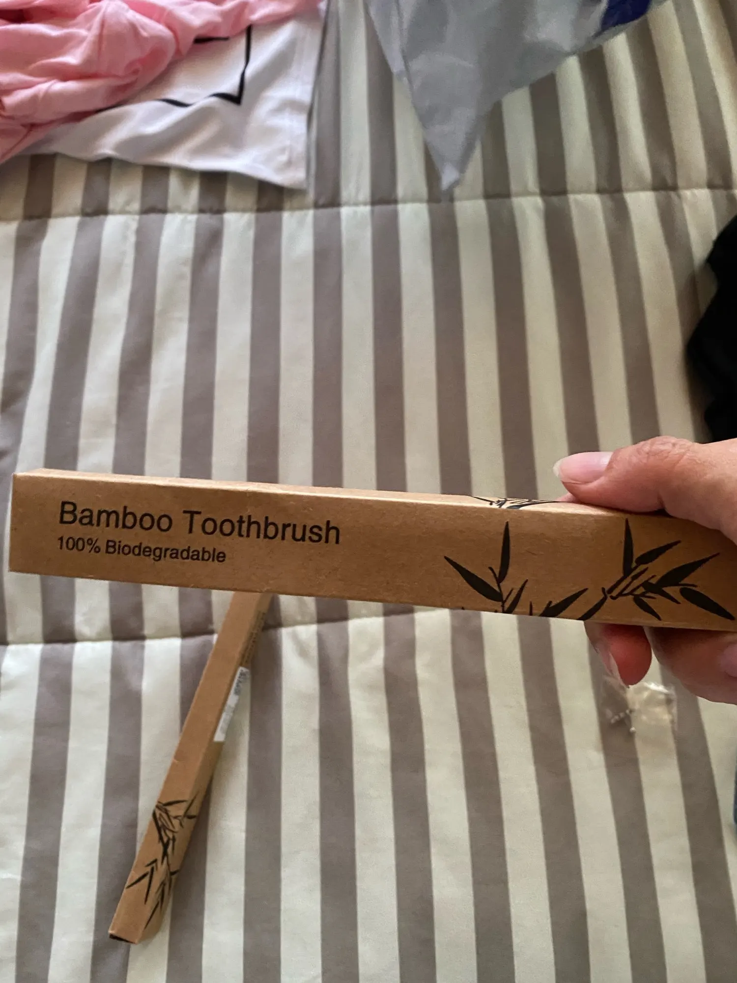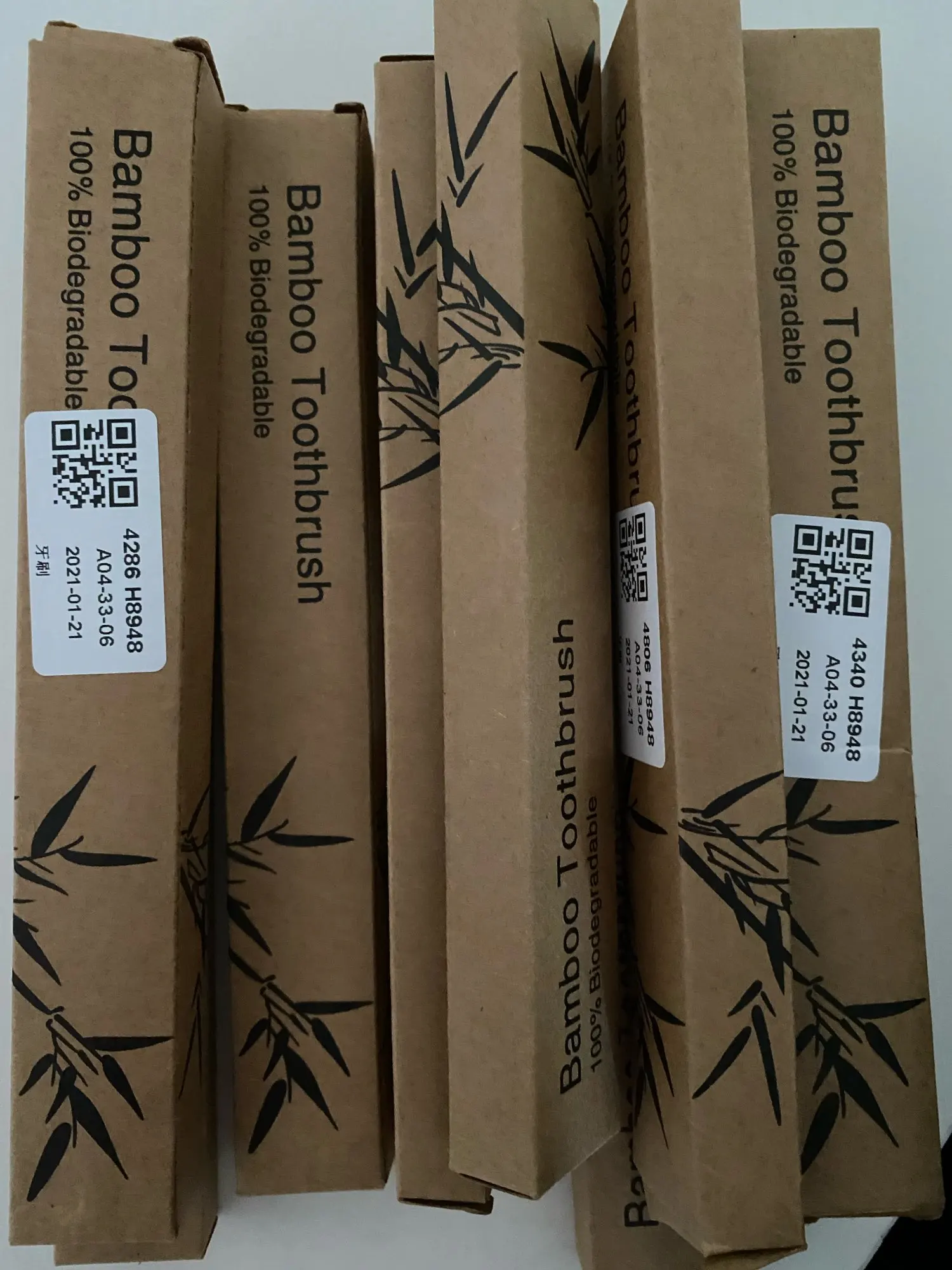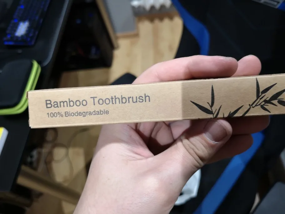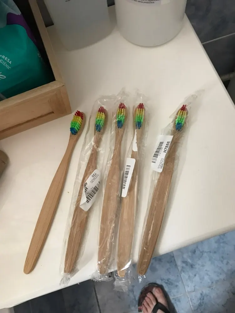 Закажите 5 бамбуковых деревянных зубных щеток с черными щетинами, которые поставляются в отдельной картонной упаковке! Щетинки достаточно жесткие, не слишком жесткие! Товары, поставляемые в Бельгии всего за 1 месяц