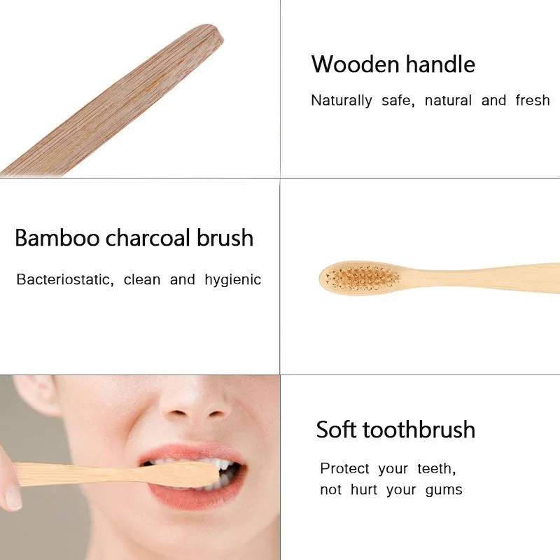Зубная щетка с бамбуковой ручкой, мягкая, зубная щетка с бамбуковой щетиной, 10 шт.