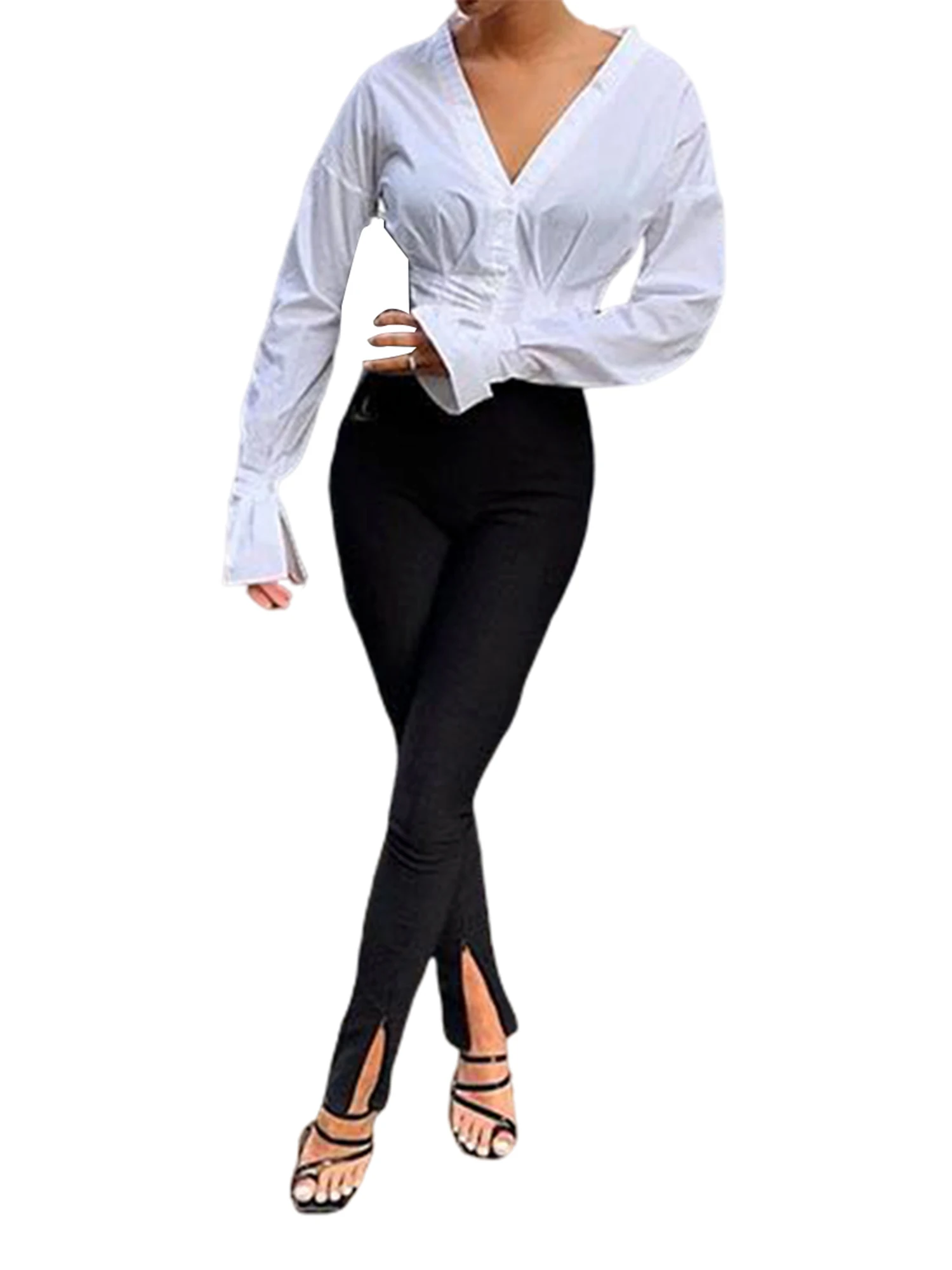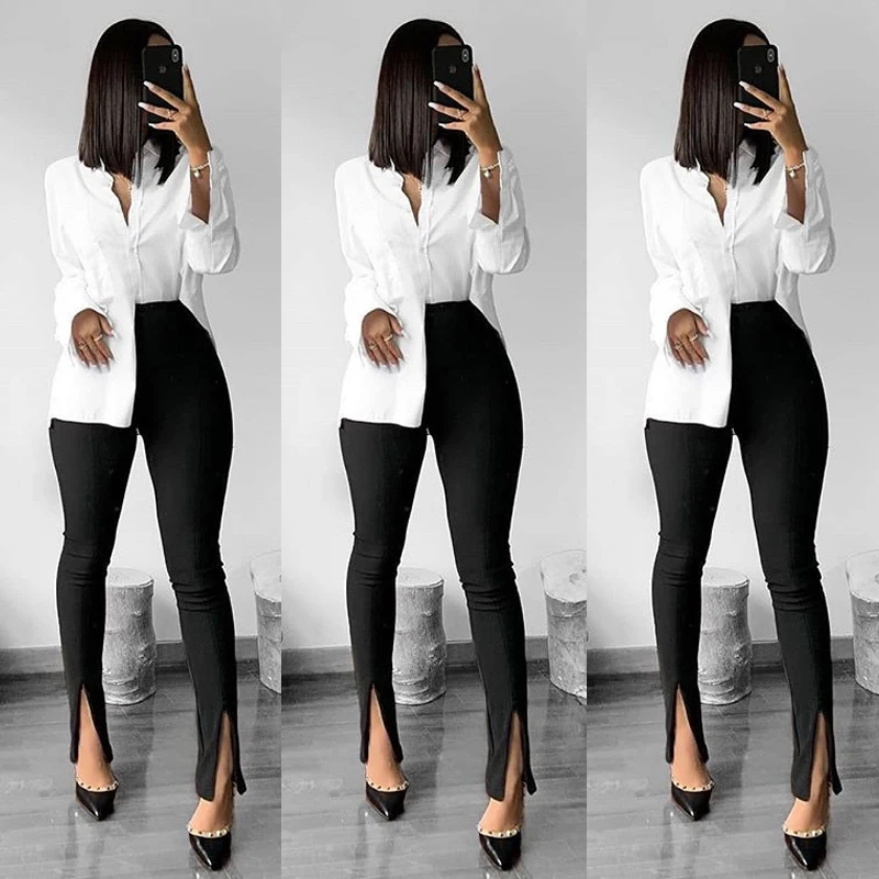 Новые модные женские облегающие брюки с разрезом спереди, однотонны...