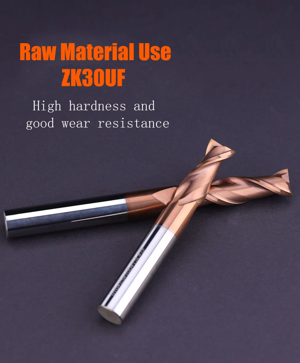 5 шт. плоские фрезы 1 мм HRC60 2F-D1X50L Концевая фреза твердосплав...