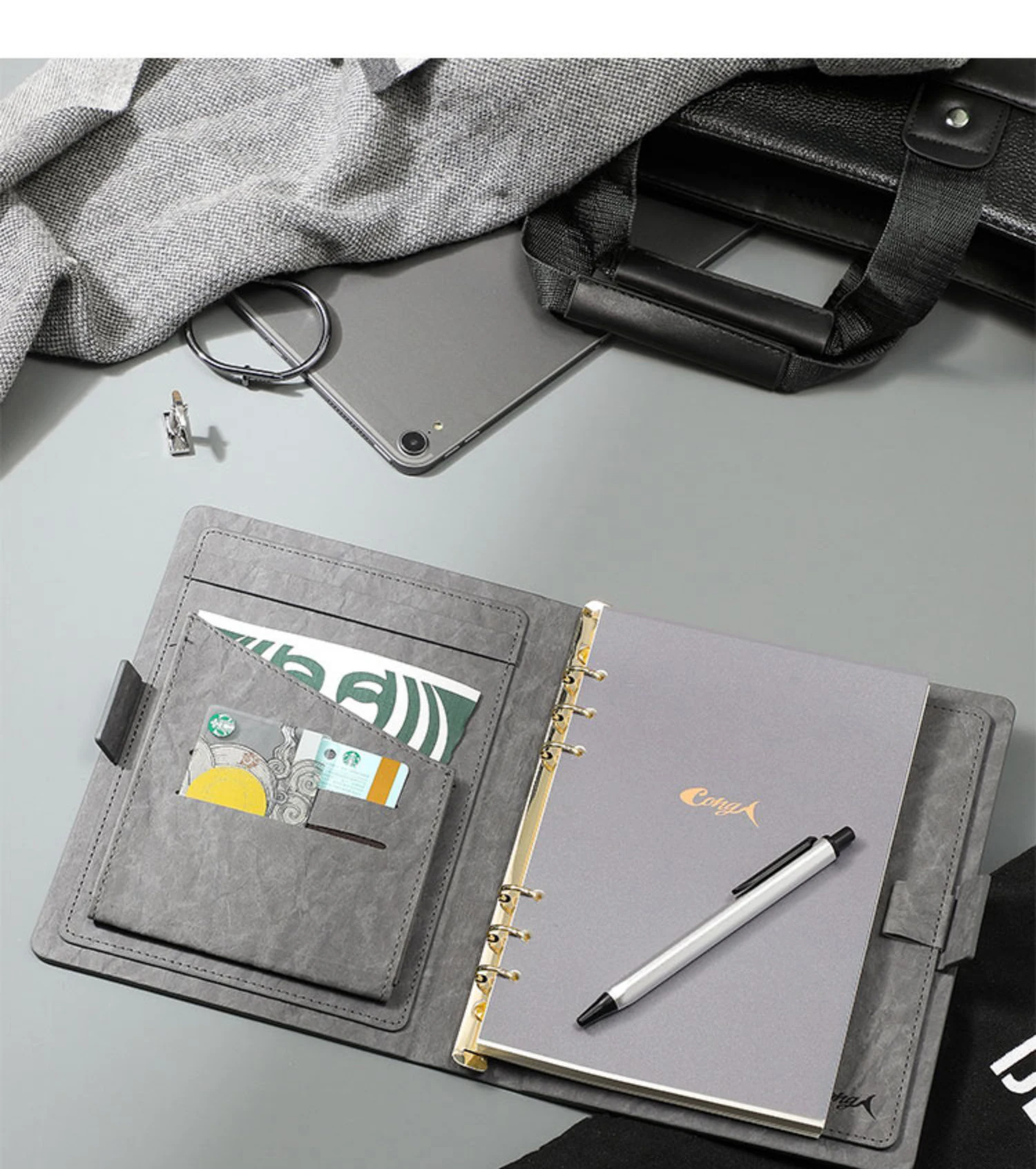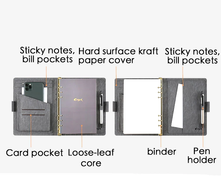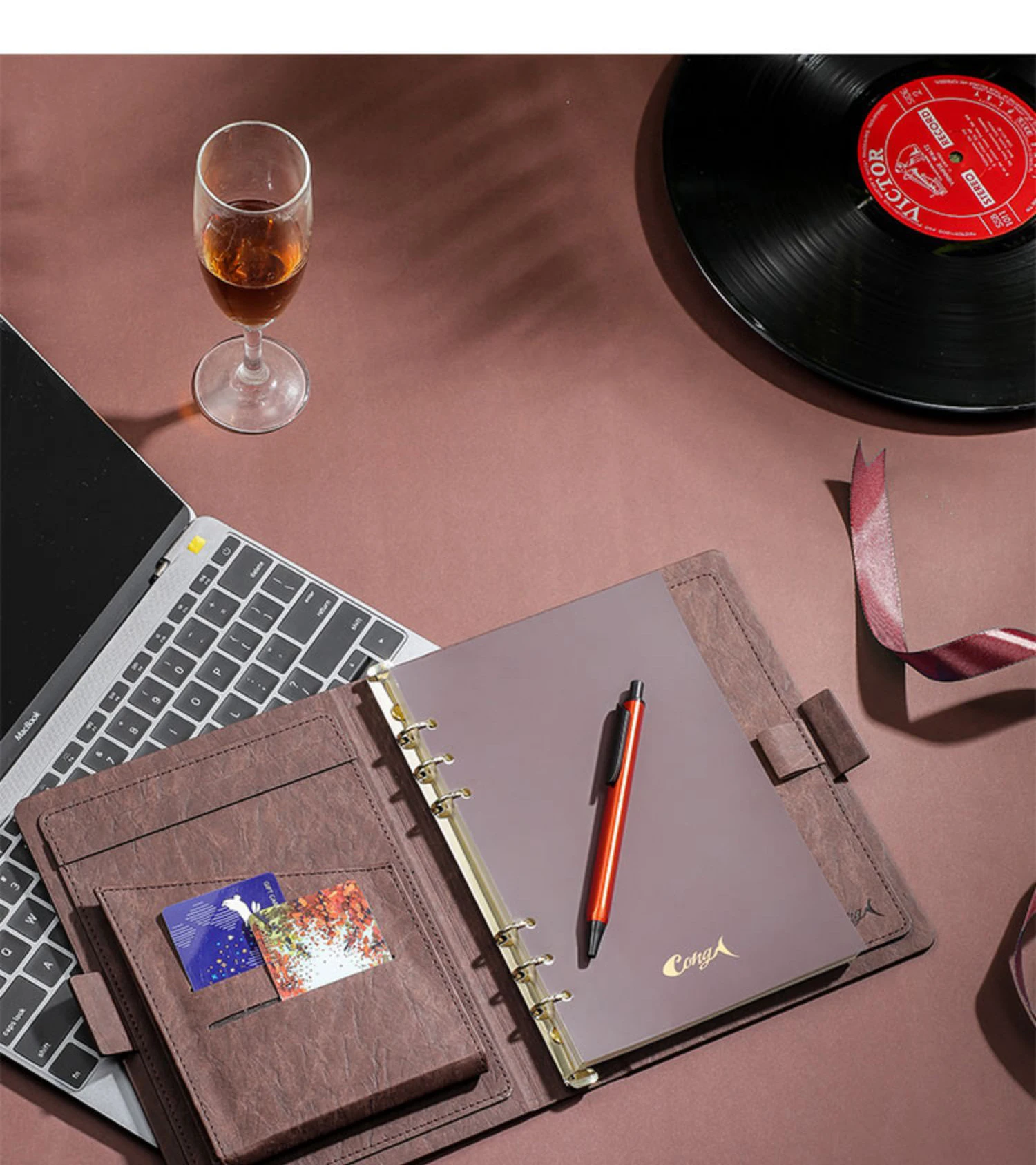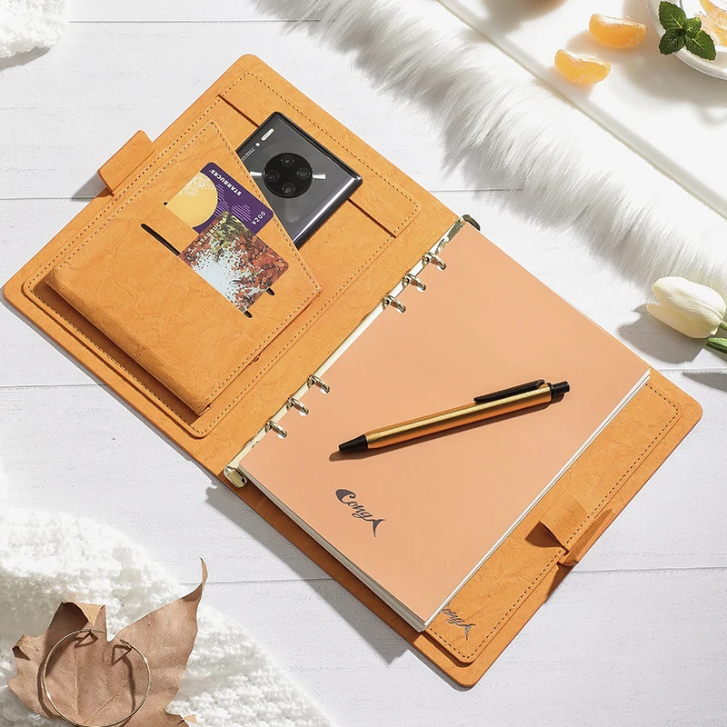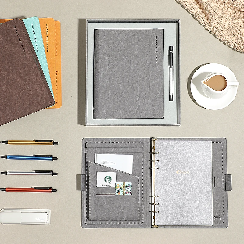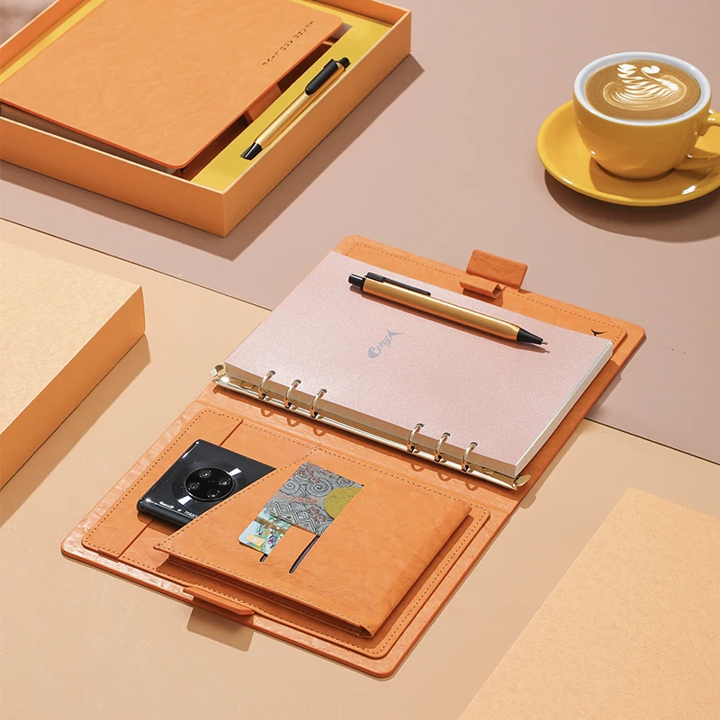 А5 Высококачественная деловая кожаная записная книжка, меняющая цвет, для офиса, для встречи, на заказ, для печати, с логотипом, книжка с листьями, 6 отверстий, дневник, подарочная коробка