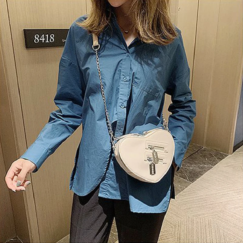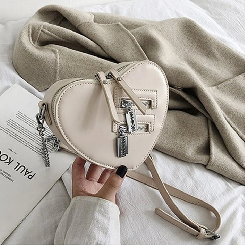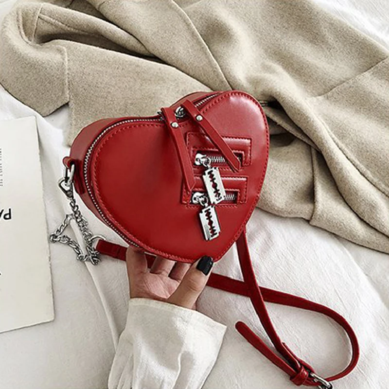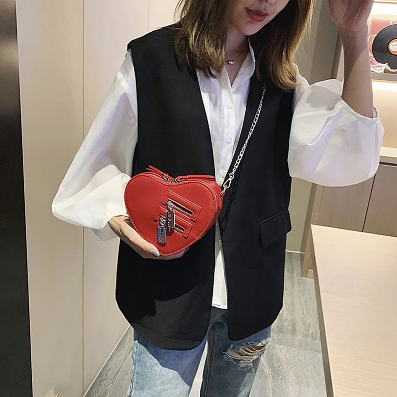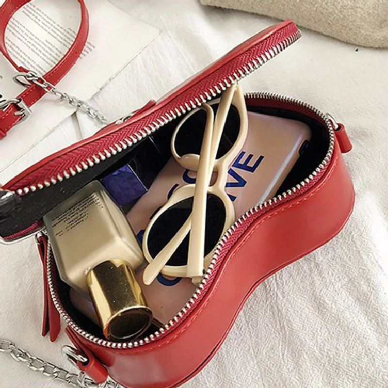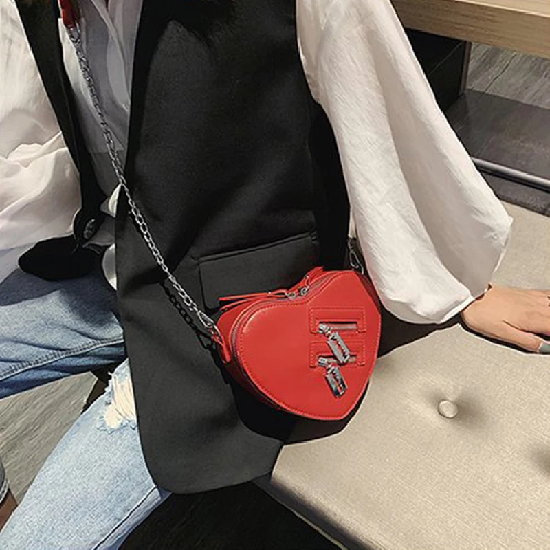 Женская сумка через плечо в форме красного сердца, дамская сумка через плечо с цепочкой в Корейском стиле, кошелек и клатч, сумка из искусственной кожи