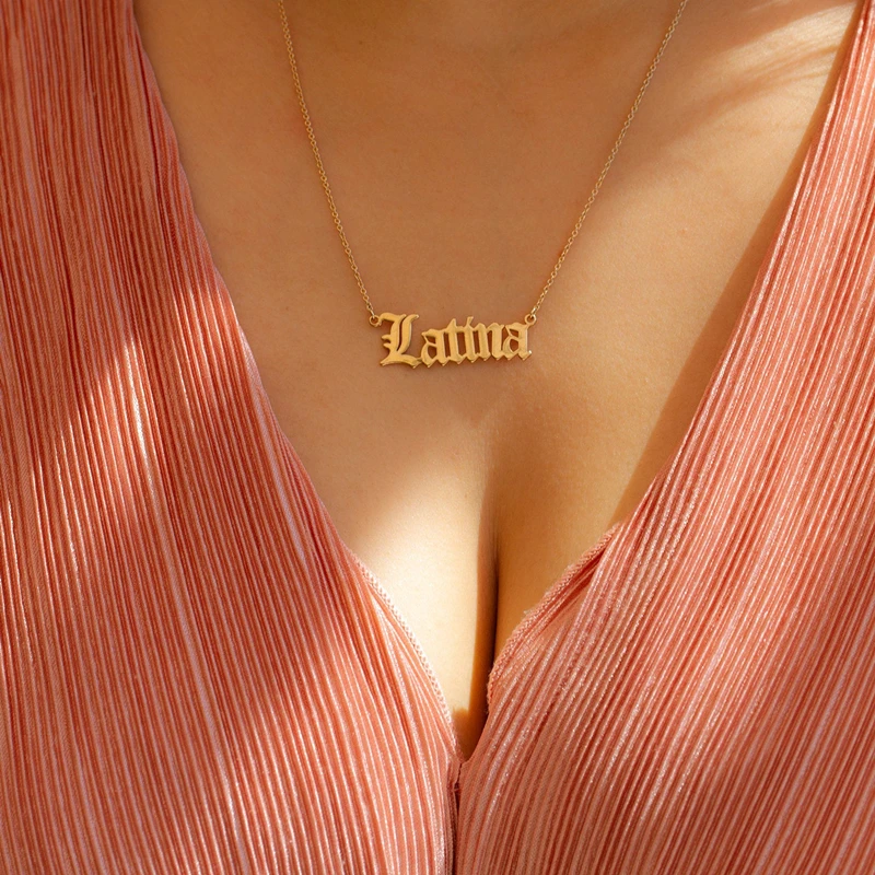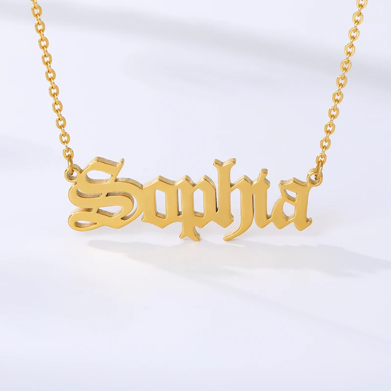 Ожерелье с именем на английском, классические ювелирные изделия, персонализированные подарки, колье из нержавеющей стали с древней английской именной табличкой