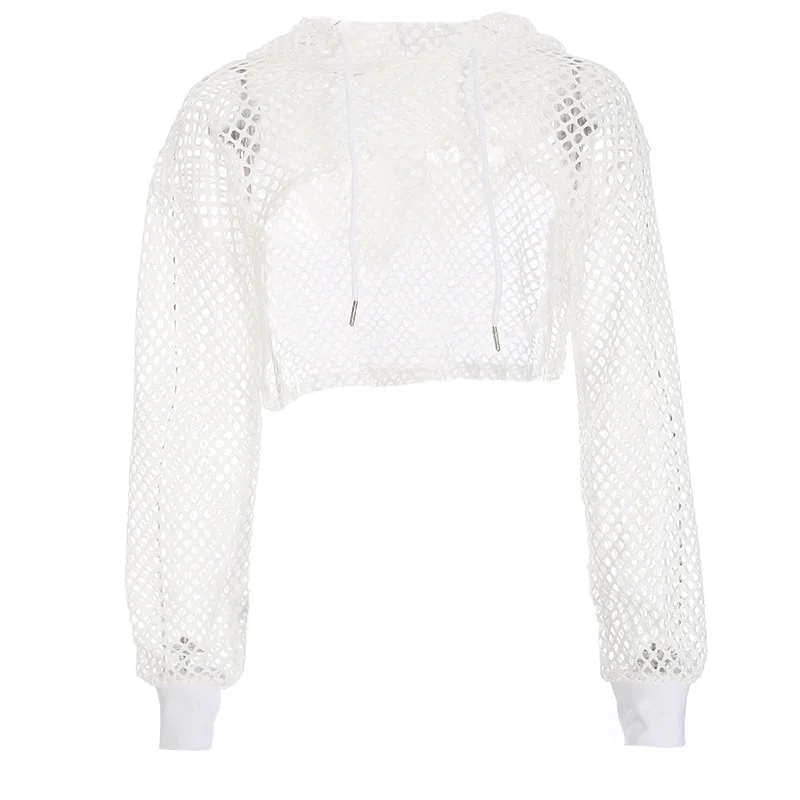 Прозрачная сетчатая ультраукороченная Толстовка с длинным рукавом