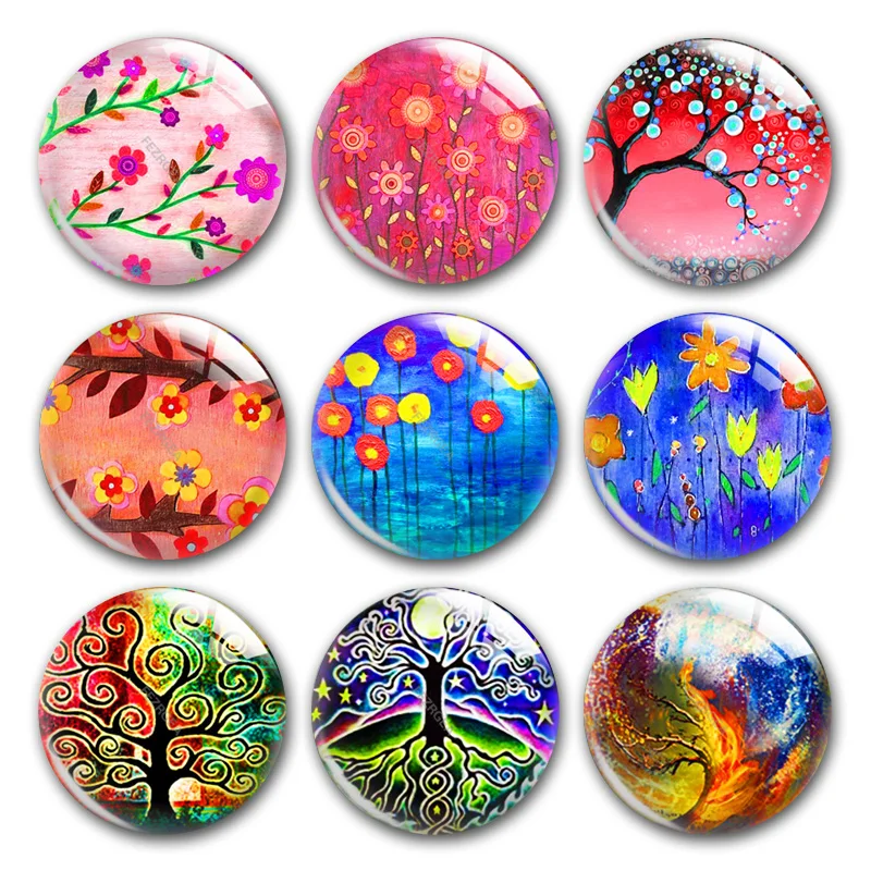 Ручная работа Дерево жизни весенний цветок круглый фото стекло кабошон demo плоская задняя часть, DIY pin manualidades Изготовление ювелирных изделий поставки.