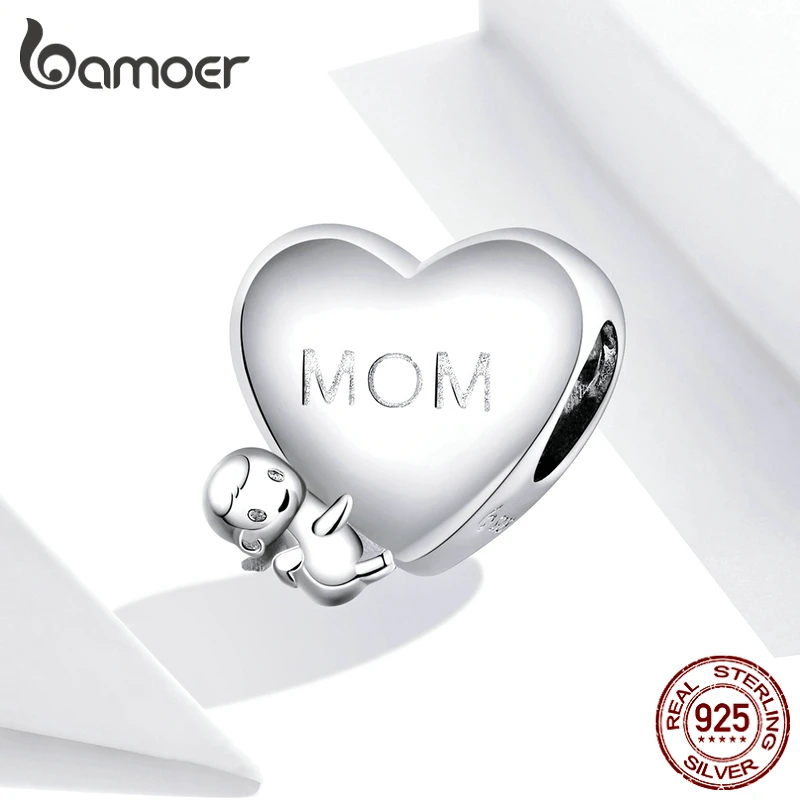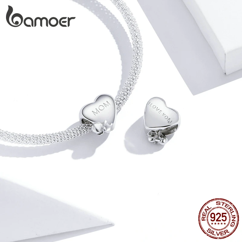 Bamoer, для Дня матери, для малышей, в форме сердца, очаровательные 925 пробы, серебряные металлические бусины для женщин, для изготовления ювелирных изделий, сделай сам, BSC218