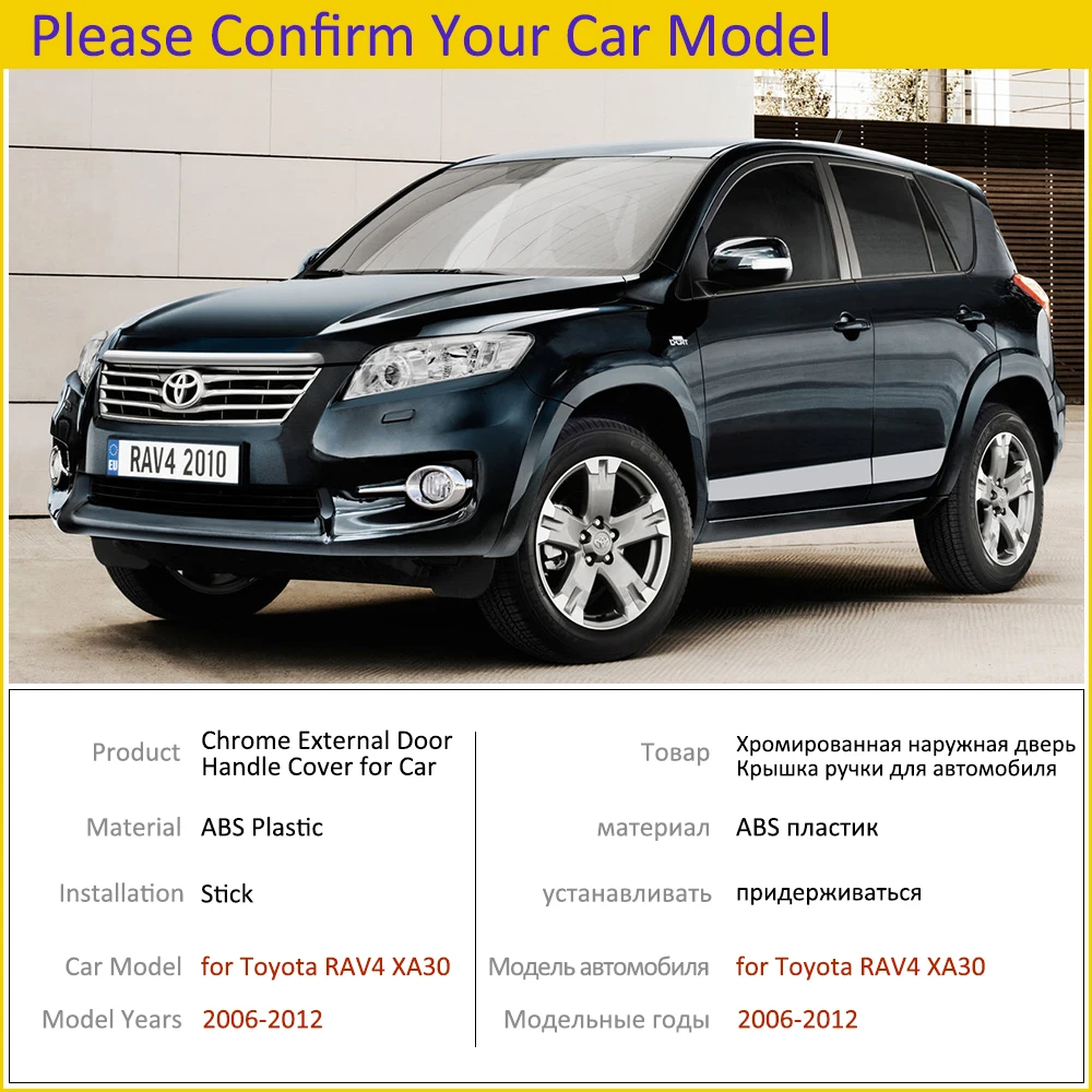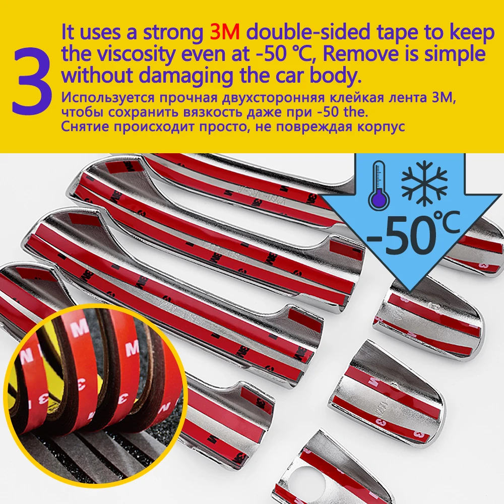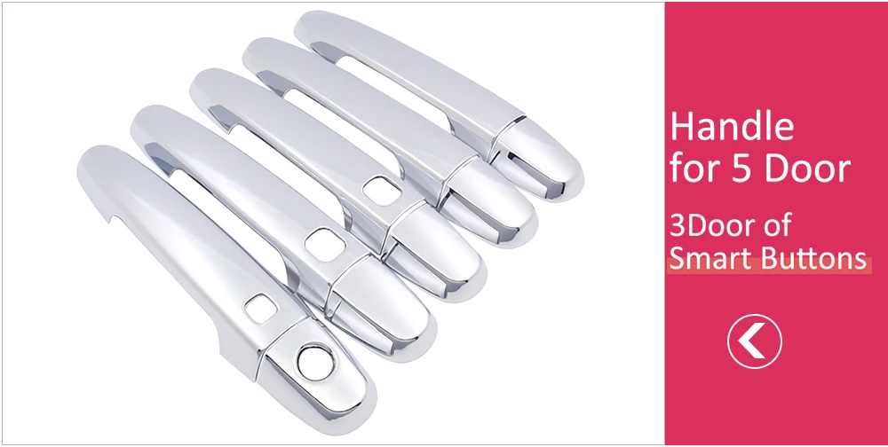 Высококачественный Стильный хромированный чехол на дверную ручку для превосходной защиты дверной ручки автомобиля. И подчеркивает внешний вид автомобиля. Изготовлен из высококачественного хромированного АБС-пластика. Они формовали контуры ручек снаружи автомобиля, чтобы обеспечить индивидуальную посадку. Хромированная крышка дверной ручки обеспечивает максимальную царапину дверной ручки. В то же время улучшает внешний вид автомобиля. Инструкции по установке: 1. Очистите автомобиль 2. Подтвердите положение поисковой части Ваша рука 3. Наклейте двусторонний скотч 4. Успех! Представлены красивые дверные ручки