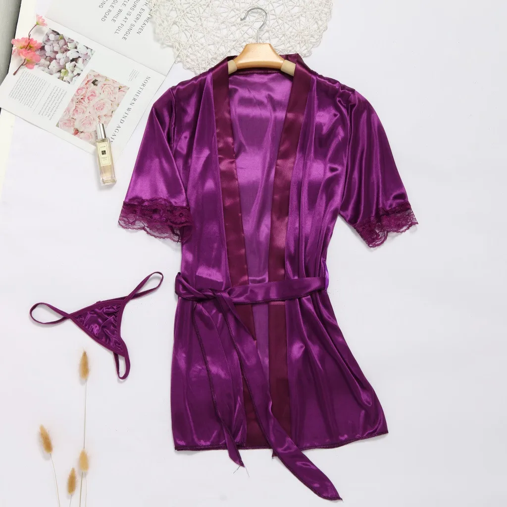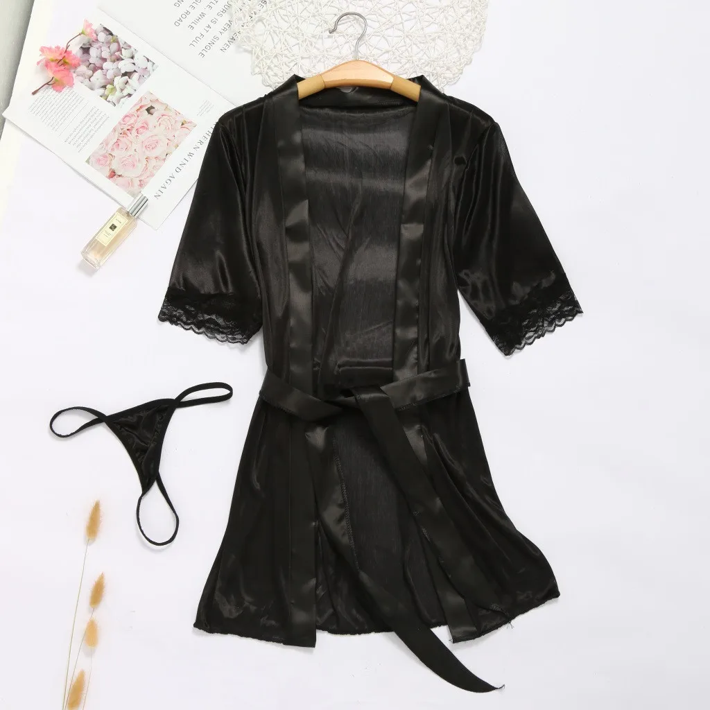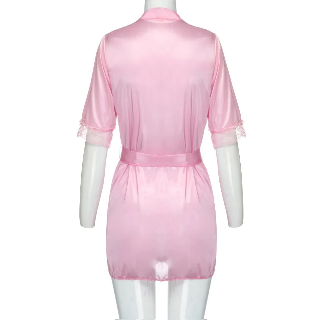 Женская атласная ночная рубашка, шелковая кружевная ночная рубашка без рукавов, кимоно, пижама # W