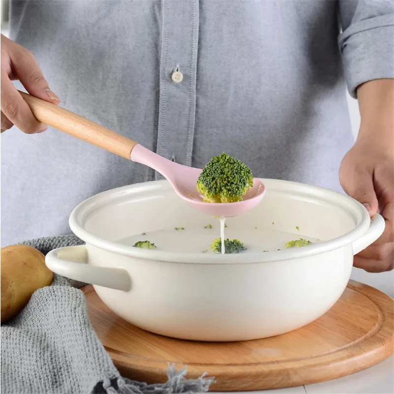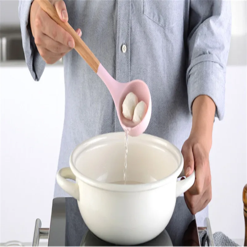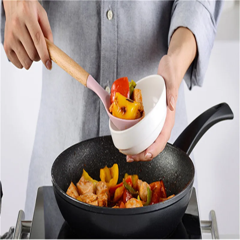1 шт. силиконовая посуда с деревянной многофункциональной ручкой, с...