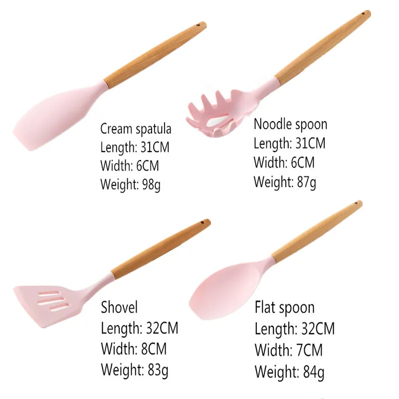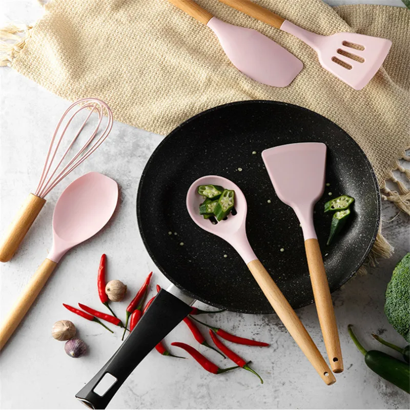 1911 шт розовый Силиконовый деревянный Тернер, ложка для супа, лопатка, щетка, скребок, паста, сервер, яйцо, мясорубка, кухонные инструменты, кухонная посуда