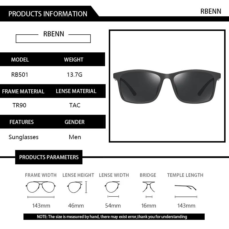 Мужские солнцезащитные очки для вождения RBENN, брендовые дизайнерские поляризационные солнцезащитные очки в оправе из TR90, очки ночного видения UV400 С Подарочной упаковкой, 2020