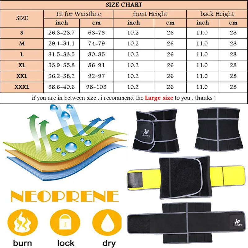 Size Of waist trainerS,M,L,XL,2XL,3XL Sport Running Body Shaper Sauna Hot Sweat Waist Belt