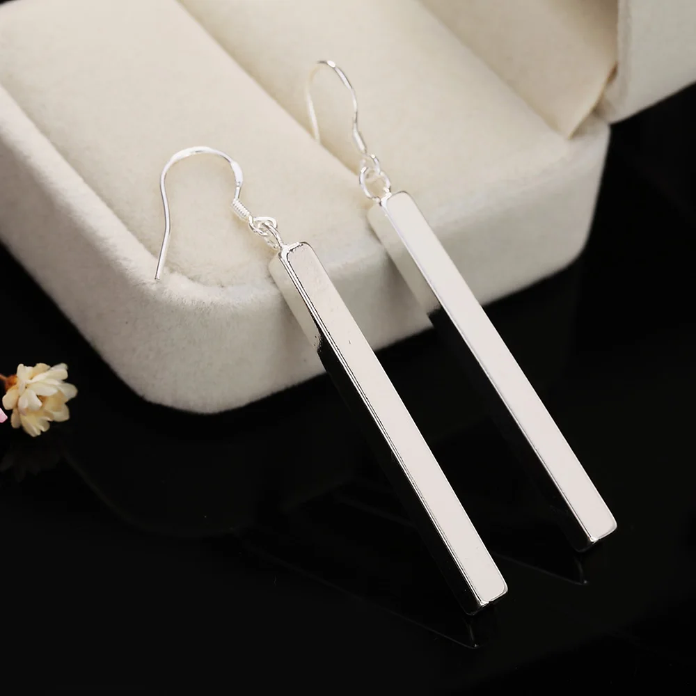 Лидер продаж, серебристые прямые висячие серьги, модные классические женские ювелирные изделия, подарочные серьги для свадебвечерние, оптовая продажа, Прямая доставка