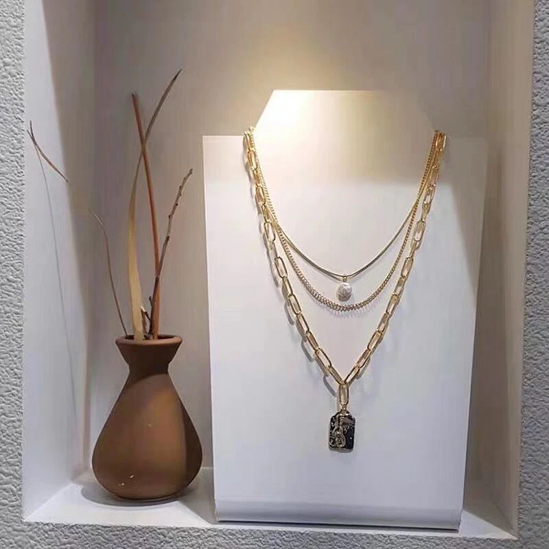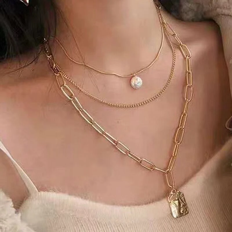 Ожерелье женское металлическое трехслойное, винтажное Длинное колье-чокер с изображением лица и монет, цепочка до ключиц, цепь для свитера