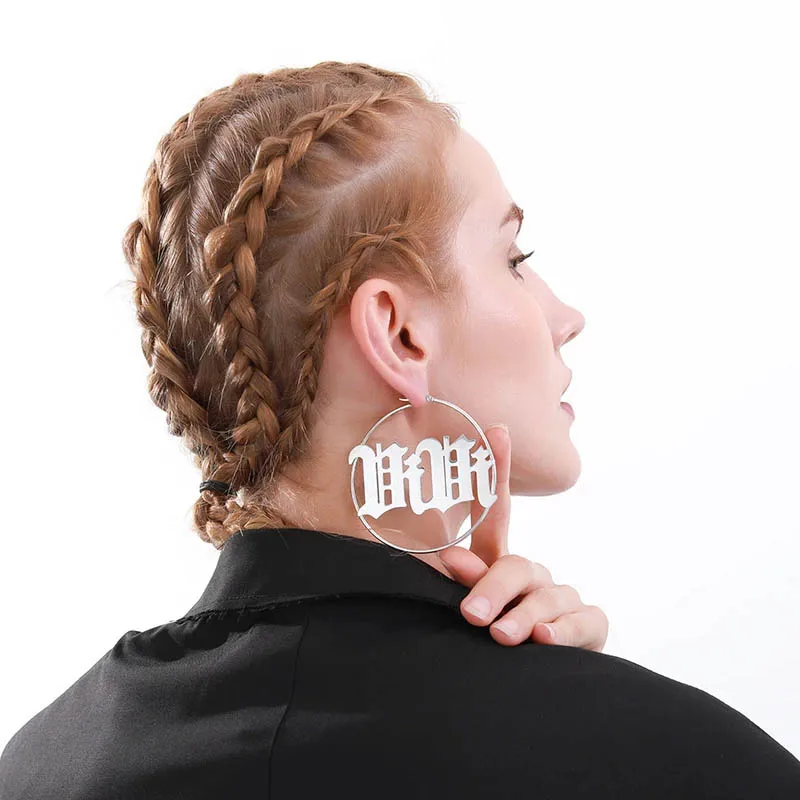 Модные 20-70 мм большие серьги-кольца с именем даты на заказ серьги...