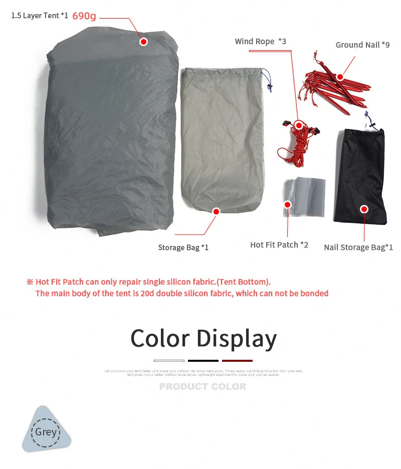 Аксессуары: палатка 1,5*1 + ветровая веревка * 3 + заземляющий гвоздь * 9 + сумка для хранения * 1 + популярная нашивка * 2 + сумка для хранения ногтей * 1