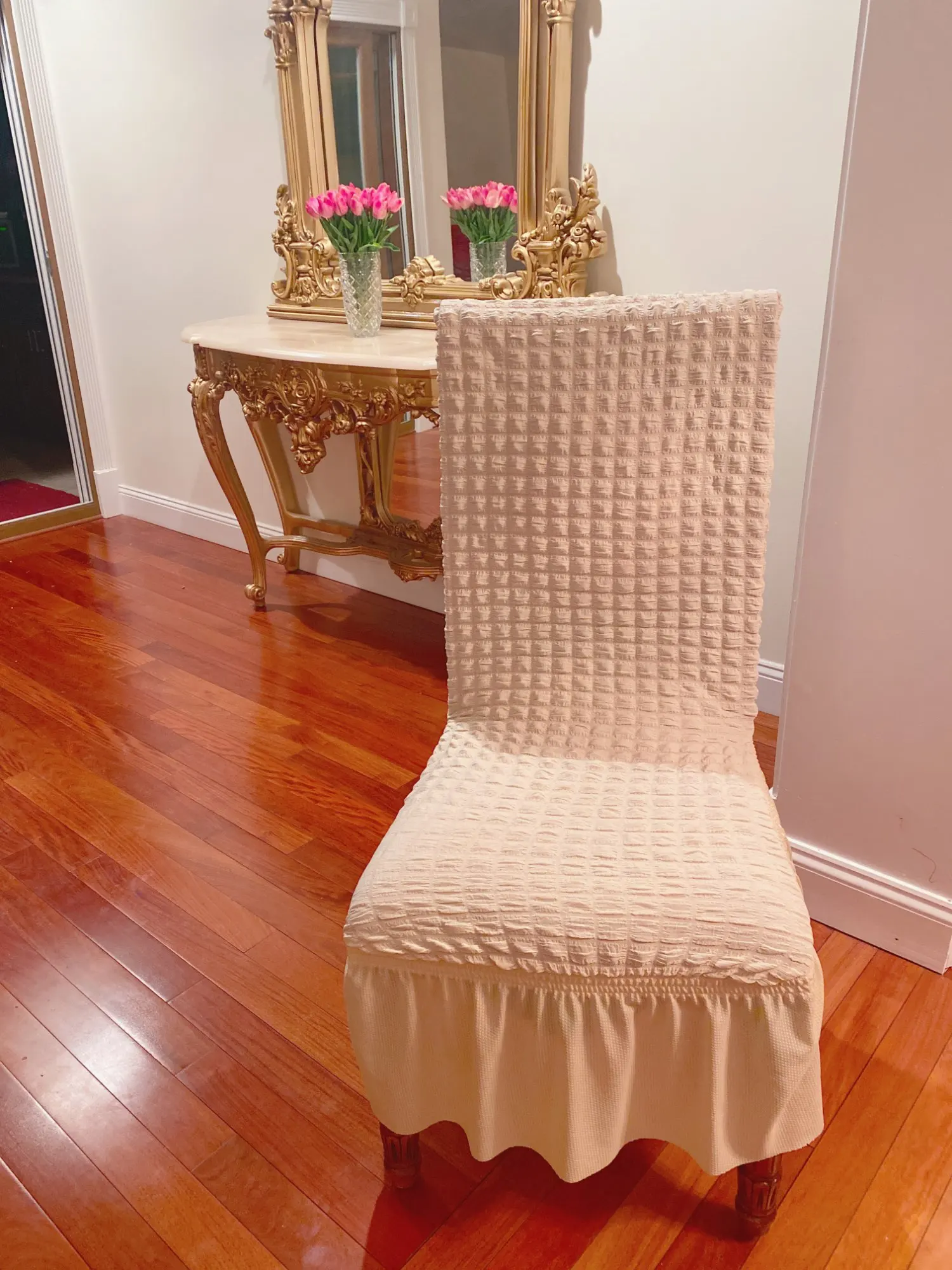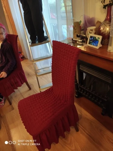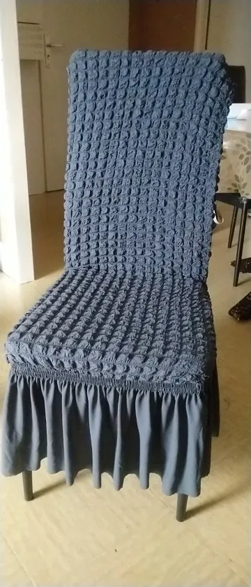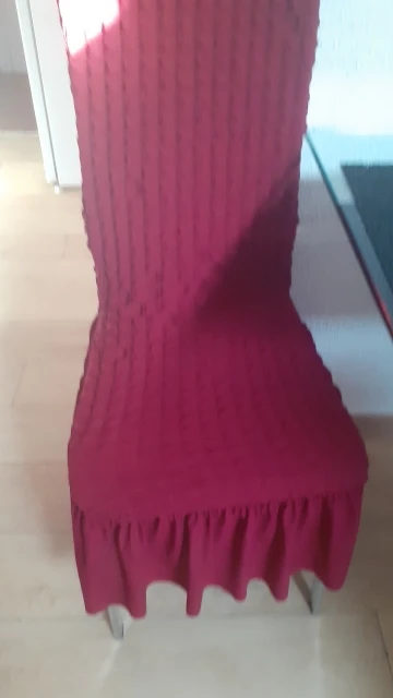 Продукт хороший, но размер маленький, если стулья толстые с сторон, в дополнение к сидению, не подходят для всех видов стульев, потому что им нужно что-то повесить ткань, Хороший материал, но размер очень маленький, извините, я не могу использовать чехлы со своими стульями