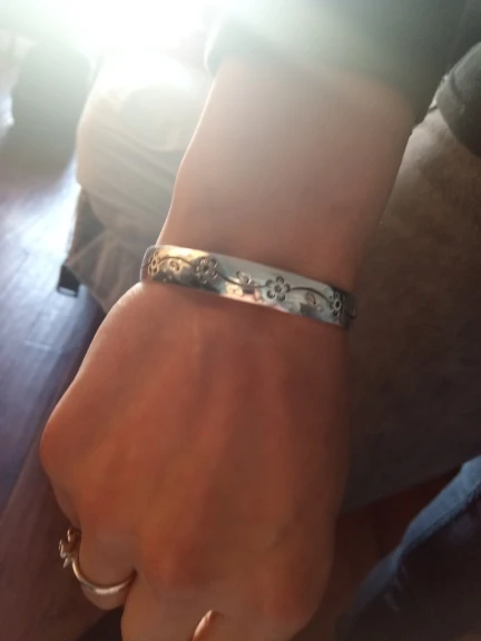 Супер хороший очень блестящий не имеет царапин на поездке, он поставляется с специальной серебряной чистящей салфеткой в комплекте, а также поставляется бархатная сумка для хранения, если вы собираетесь отдать его, По цене это очень, очень хорошо, я очень рекомендую его, я уже купил ранее, и браслеты довольно прочные, так как они серебряные, И если они не серебряные, по крайней мере, они не становятся зелеными, как большинство браслетов, я рекомендую это.
