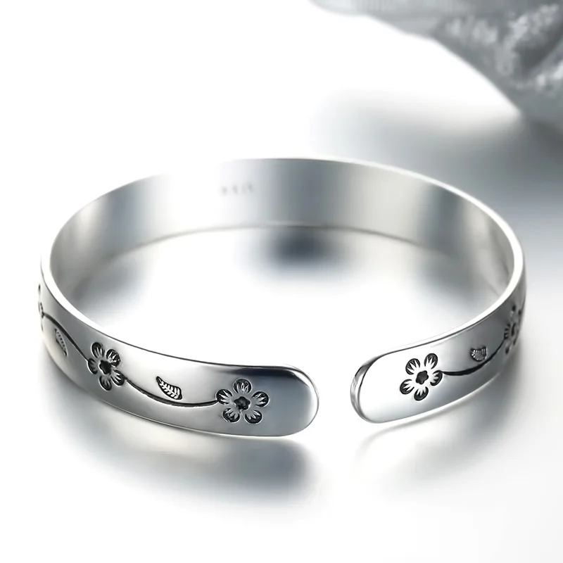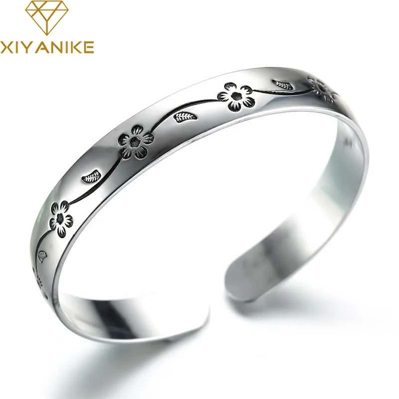 Браслет-манжета XIYANIKE вечерние серебряным покрытием, Женский винтажный Модный браслет с цветком сливы, ювелирные изделия, свадебные аксессуары