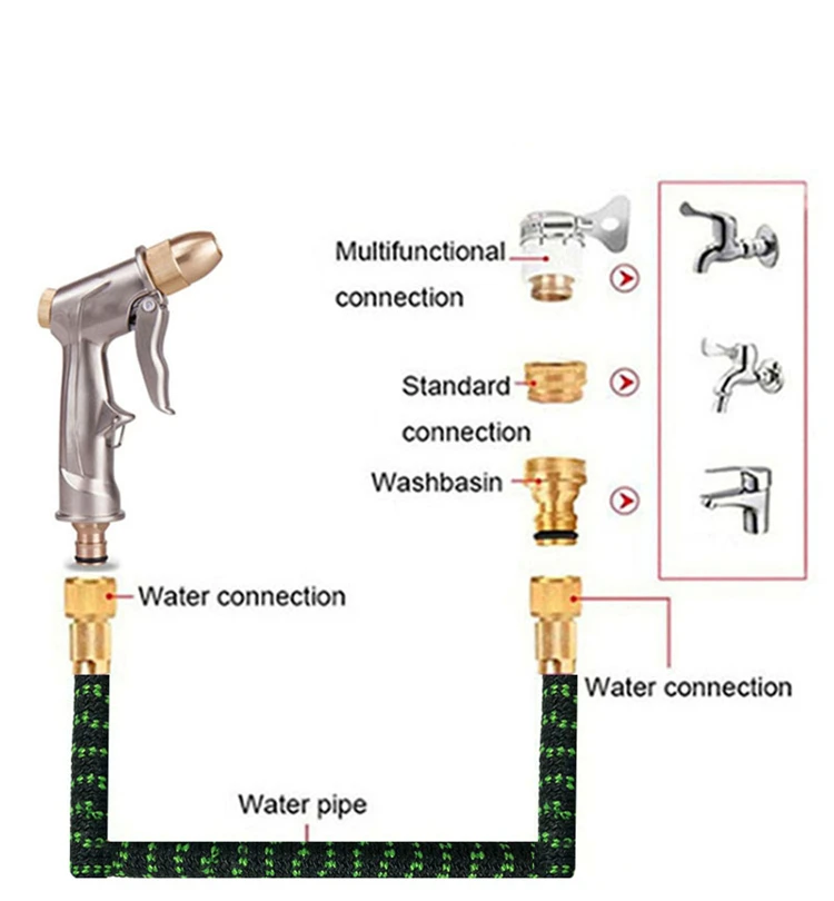 Гибкий телескопический шланг для полива автомобилей, 25-125 футов, с распылителем