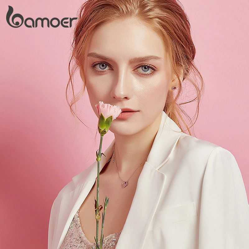 Женские силиконовые серьги-гвоздики bamoer BSE367, серьги-гвоздики из натурального серебра 925 пробы с сердцем, антиаллергенные ювелирные изделия