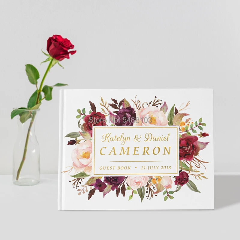 Индивидуальная Свадебная Гостевая книга бордового цвета, свадебная вывеска с цветами, свадебная книга с цветами, белая Гостевая книга, фотоальбом, Свадебная Гостевая книга на заказ