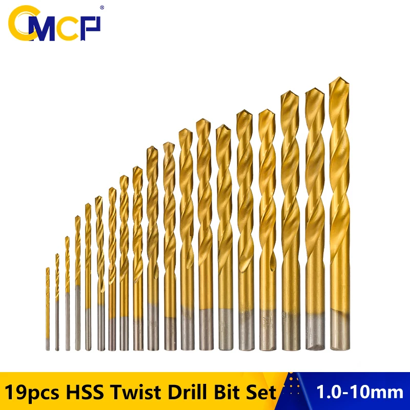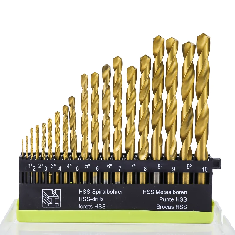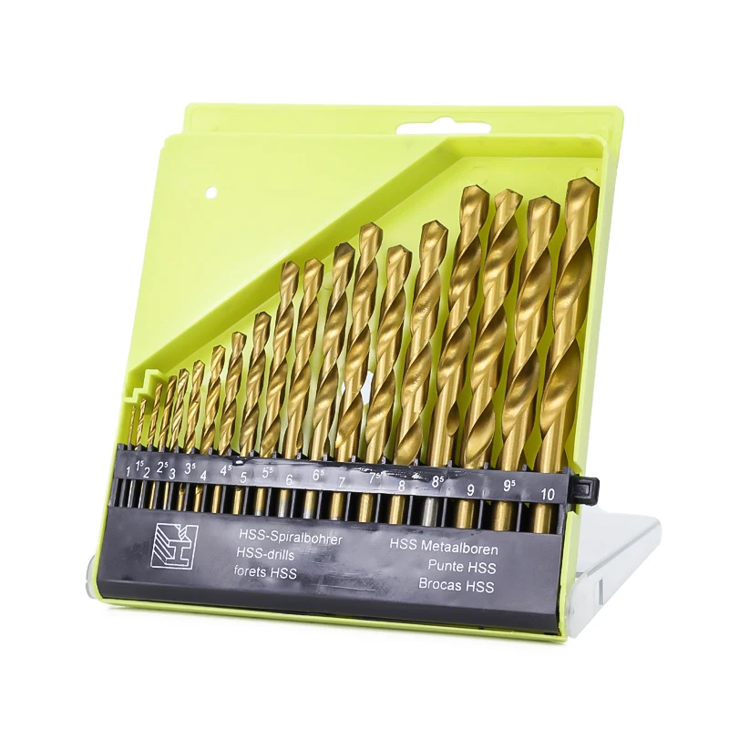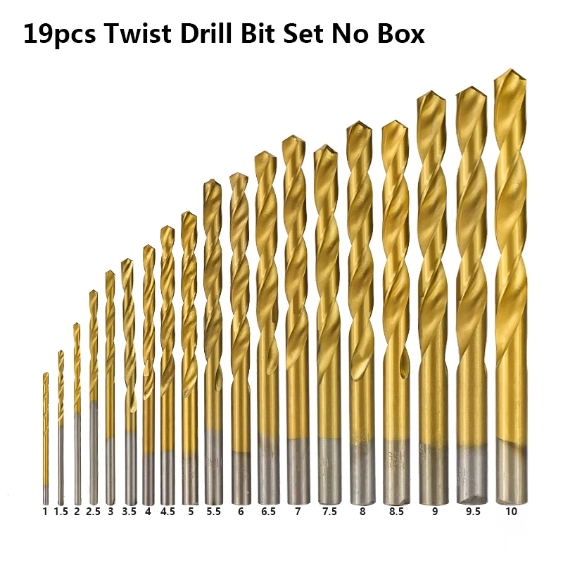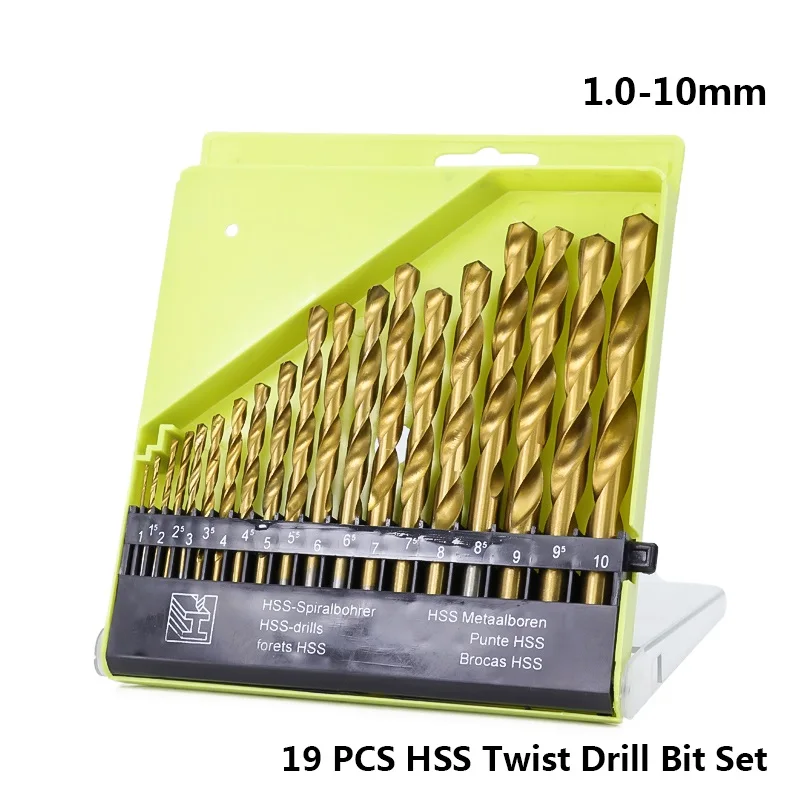 Набор спиральных сверл 1,0-10 мм из быстрорежущей стали с титановым покрытием, 19 шт.