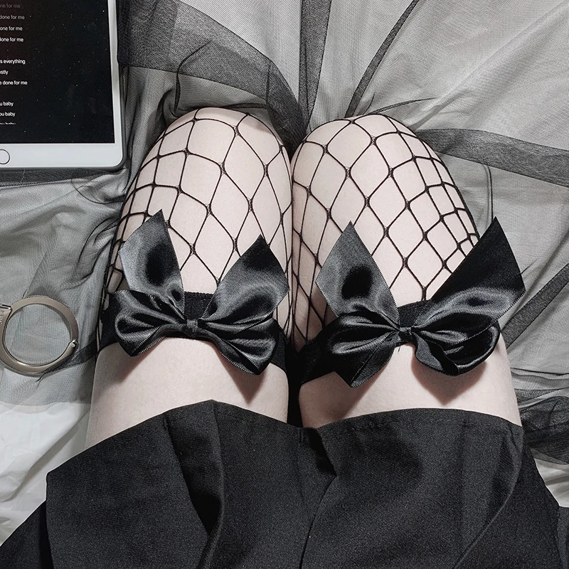 Ажурная сетка OJBK, прозрачные чулки чистый Прекрасный Бант, выше колена, черно-белый бант, сексуальные чулки, шелковые, до бедра