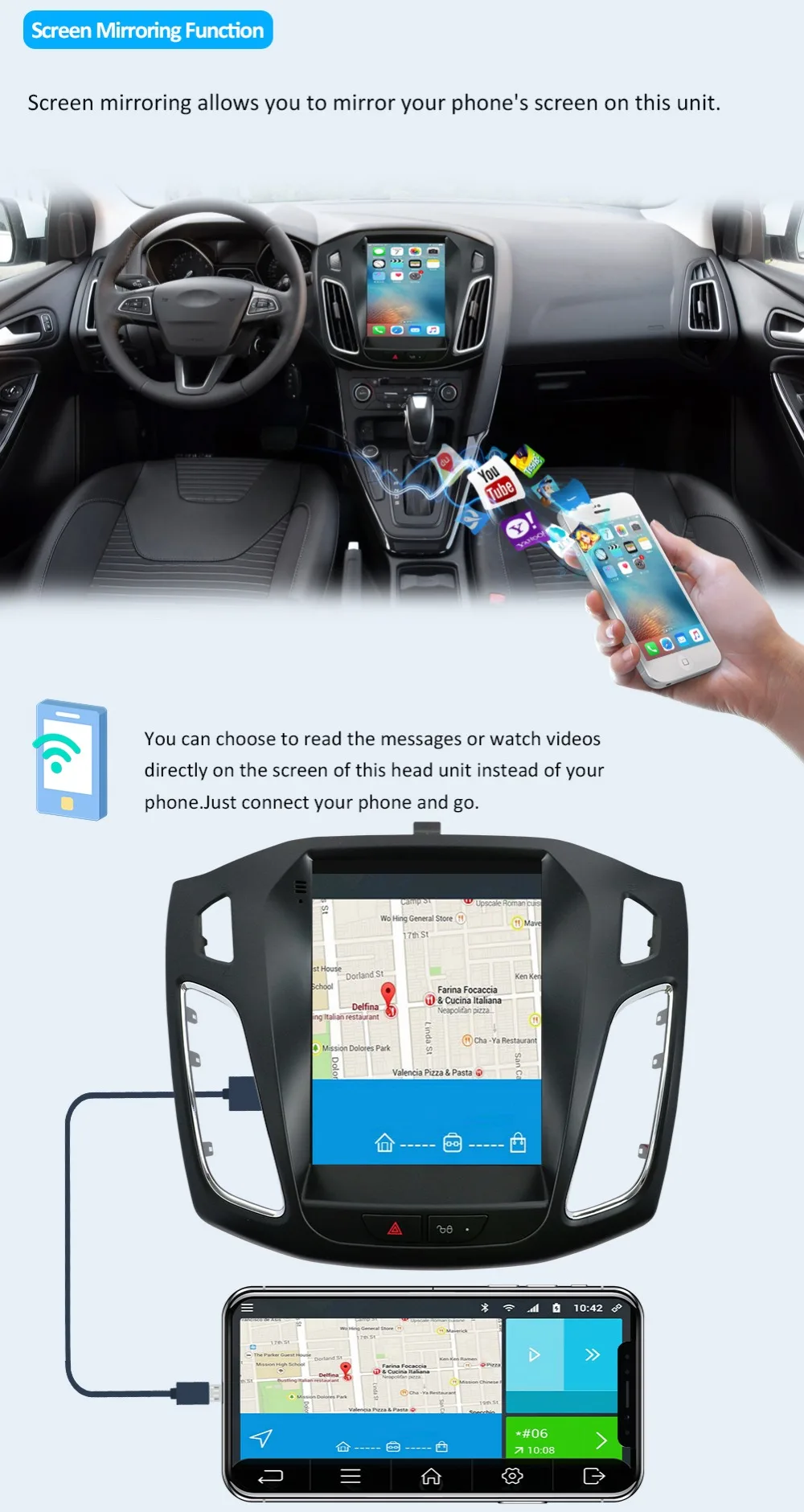 【TOP HARDWARE】▲На базе Android 10.0 операционная система-2 Гб RAM / 32 ГБ ROM - Bluetooth 5,0-максимальная емкость памяти, отсутствие недостатка делает вычисления более эффективными, в то время как режим ускорения быстрый и оптимизирован для простых, плавных игр【Совместимость 】▲Автомобильное радио Совместимо с Ford Focus 3 Mk 3 2011-2019 и т. д. проверьте размеры перед покупкой. Если вы не уверены, пожалуйста, свяжитесь с нами【Многофункциональность 】▲Поддерживает функцию Dab + Radio / Mirror Link / Carplay / Android Auto и управление рулем, объем памяти USB и micro SD до 256 ГБ, встроенный WiFi Интернет, Google Maps онлайн навигация, бесплатная автономная навигация по карте, Google Play Store【NO WORRIES】14 бесплатное возвращение в течение 14 дней (Примечание: Не включая ущерб, причиненный человеческими действиями). На протяжении всей жизни профессиональное обслуживание клиентов и 24-часовая служба технической поддержки перед покупкой и после продажи