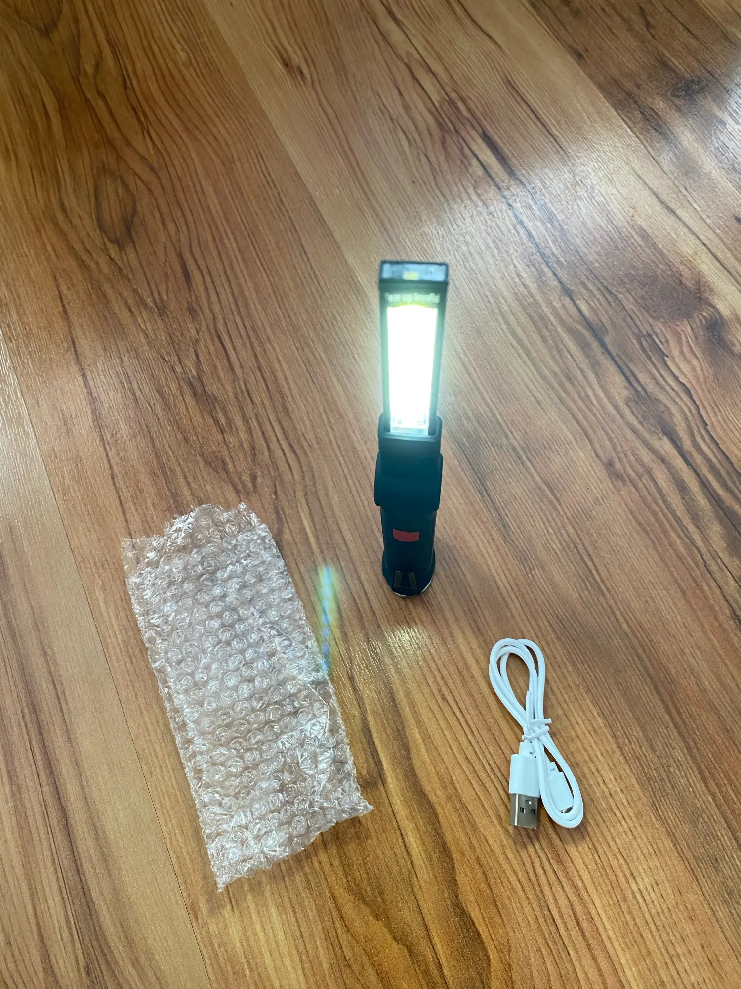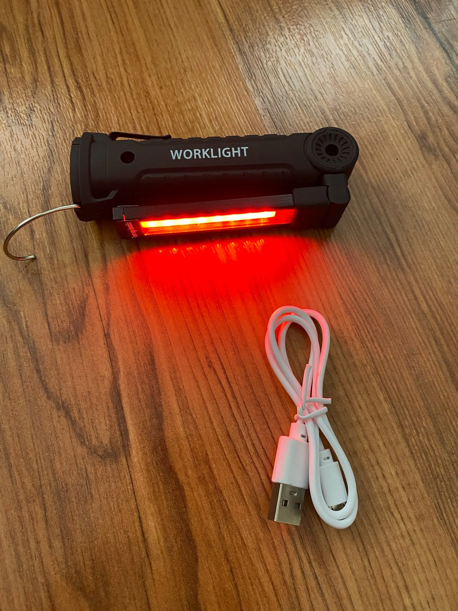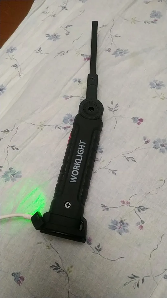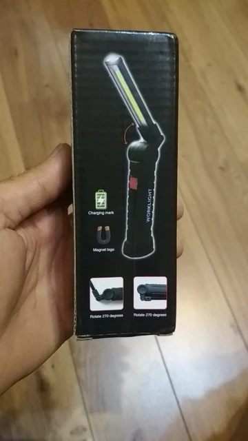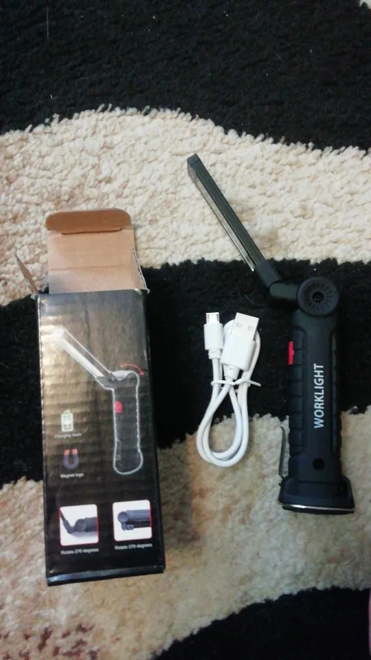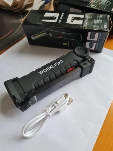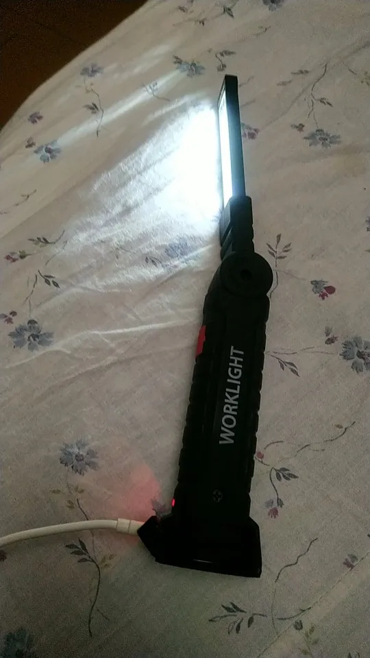 Really great product and bright, very bright LED light output. There are 3 modes of the led light, 100%, 50%, and the little led on the tip of the torch. Material is strong in the hand and the flexible bracket doesn't move easy, but it is very sturdy and has a strong built to it. It doesn't feel like it is going to break easily at the joint. The handlebar is cover with a rubber layer, so it has a good grip. At the end of the grip there is a hook, which you use to hang up the torch. But the bottom feet contains a magnet for attaching to metal objects like a bike frame or car body for easy placement while working on your vehicle. I'm very happy with my purchase and the battery lasts quite some time and did not have to charge it yet. But unfortunately you cannot see how much battery is still left in the charge, but it easily charges with a micro USB cable. I'm very glad I got two of these, so I have a backup. but will buy again if needed. because it is a great product! Recommended!