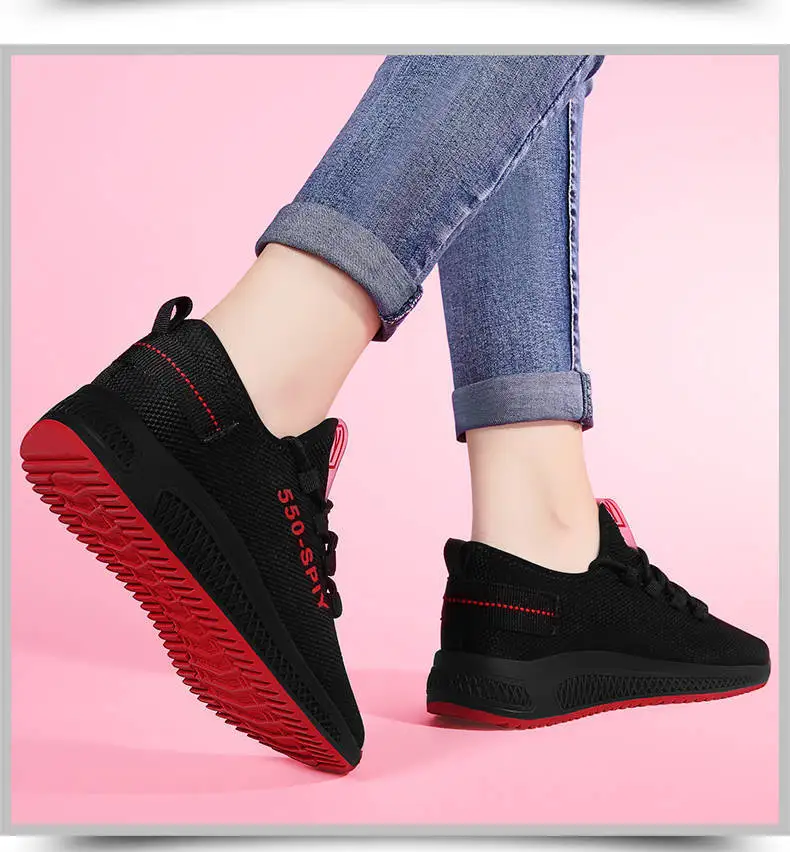 Черные женские кроссовки; Повседневная спортивная обувь из сетчатого материала для прогулок; Дышащая обувь из сетчатого материала на шнуровке; Женские кроссовки