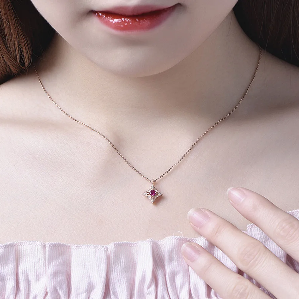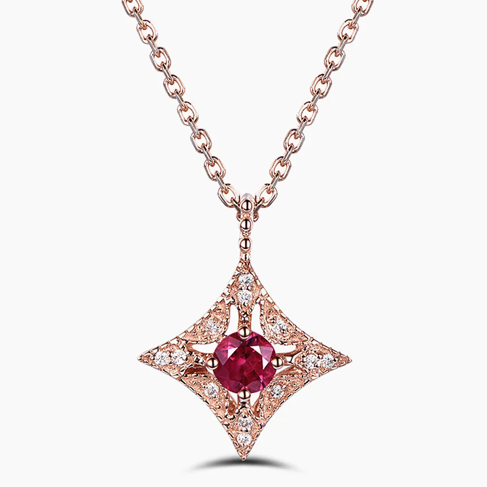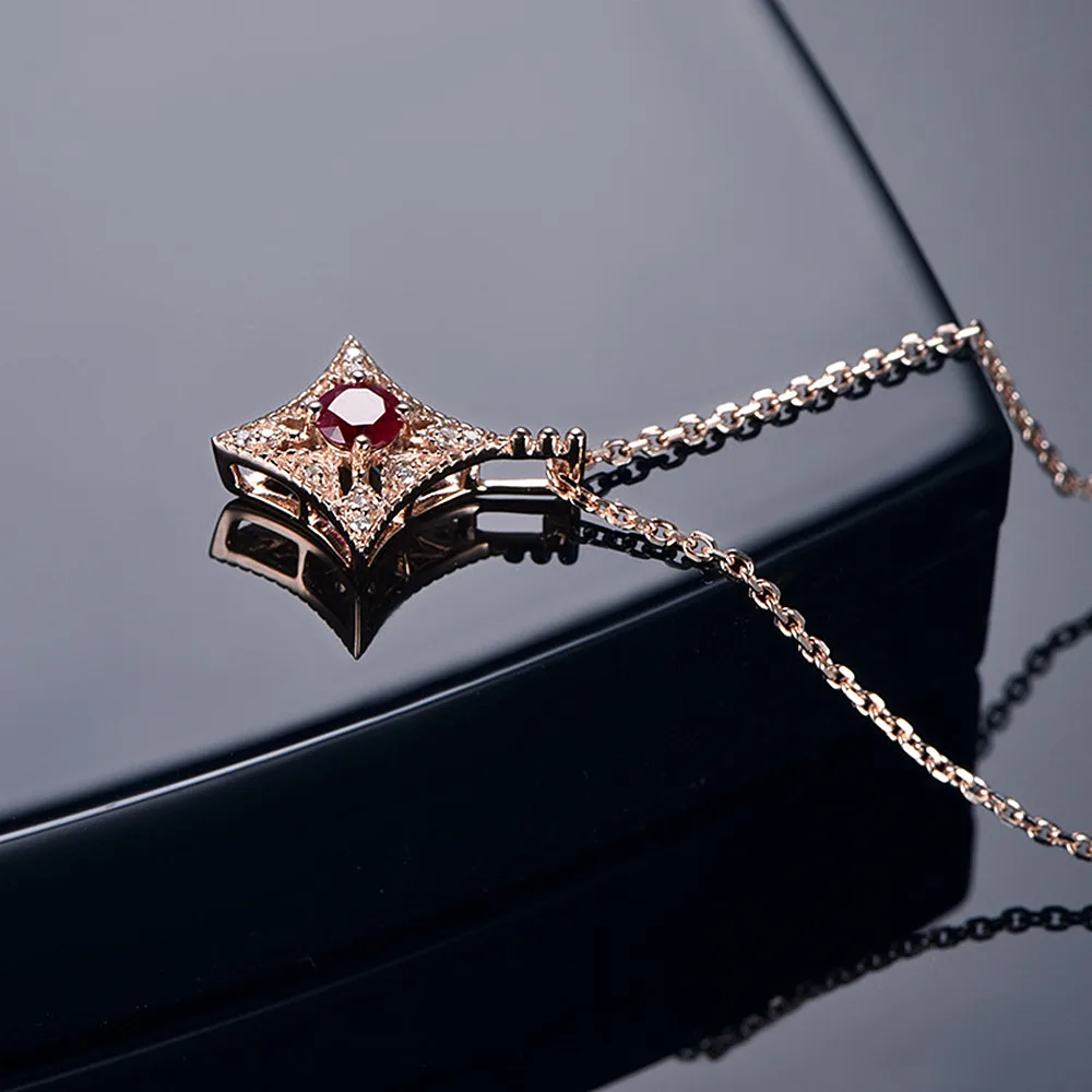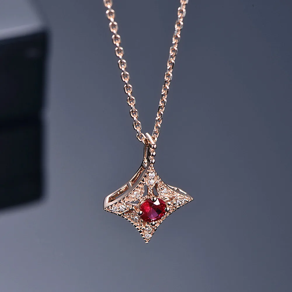 Женское ожерелье с подвеской из розового золота, с красными кристаллами и рубинами