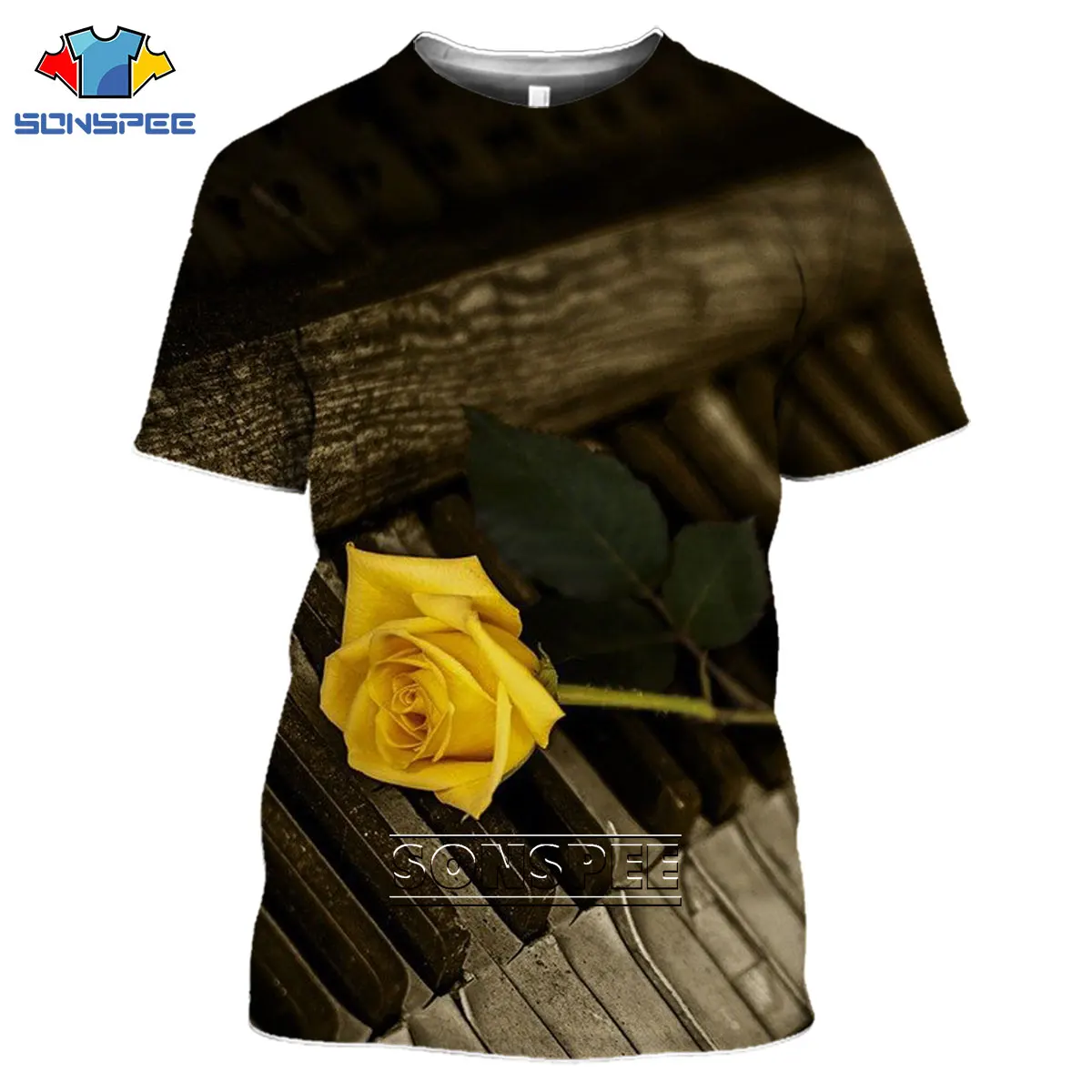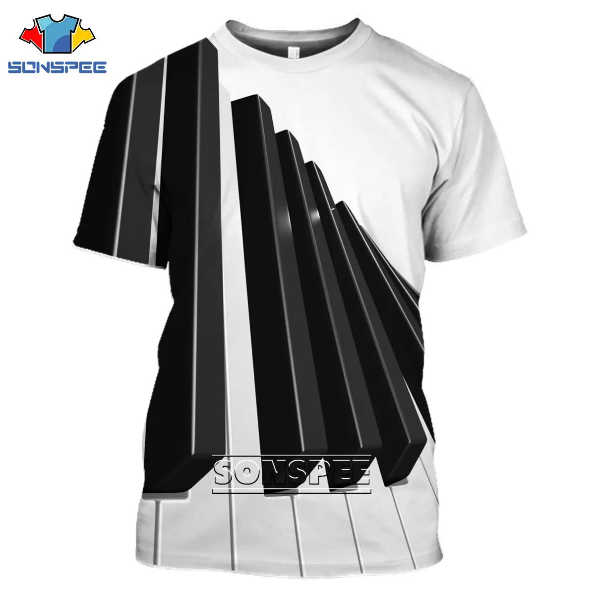 Футболка SONSPEE с 3d принтом пианино в стиле Харадзюку, летняя модная повседневная мужская футболка с коротким рукавом, женская уличная футболка, футболки, топы