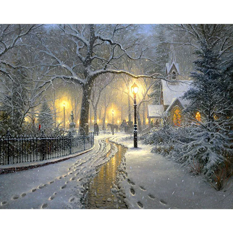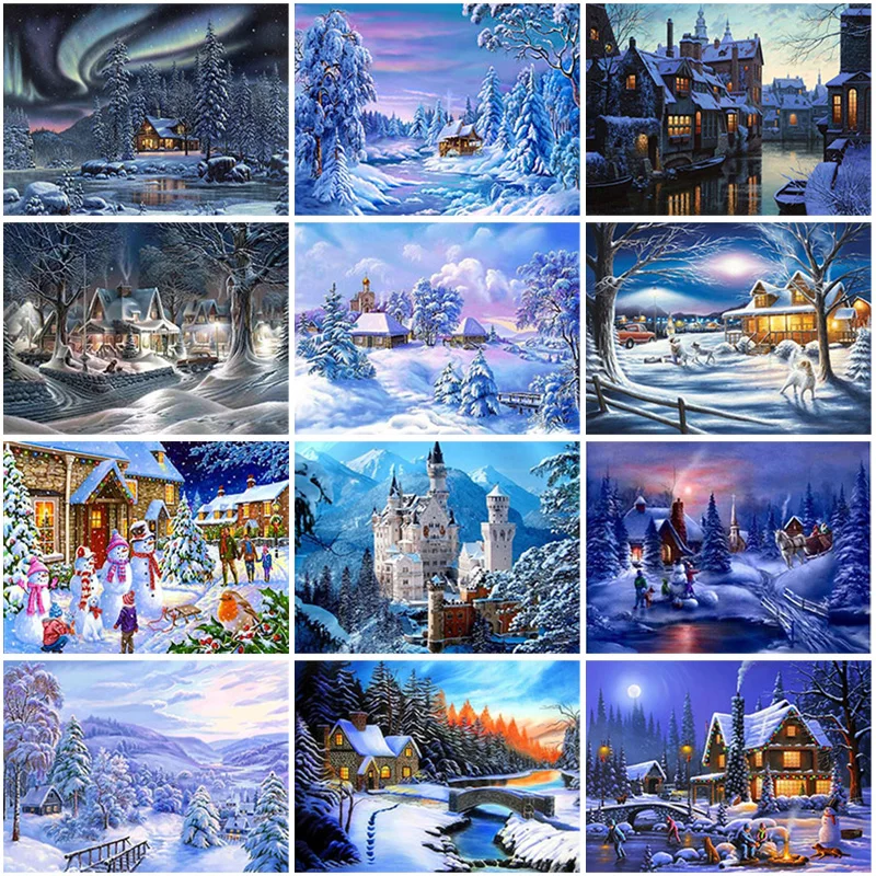 Алмазная живопись 5D "сделай сам", зимний Снежный пейзаж, мозаика, ...