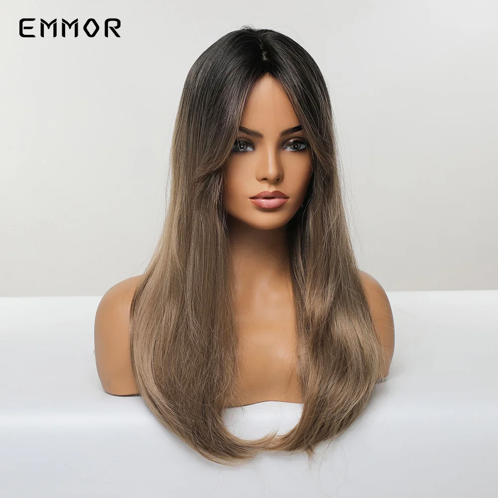 Парик EMMOR с эффектом деграде, черные светло-каштановые волосы с челкой для женщин, длинные парики из натуральных синтетических волнистых волос Блонд