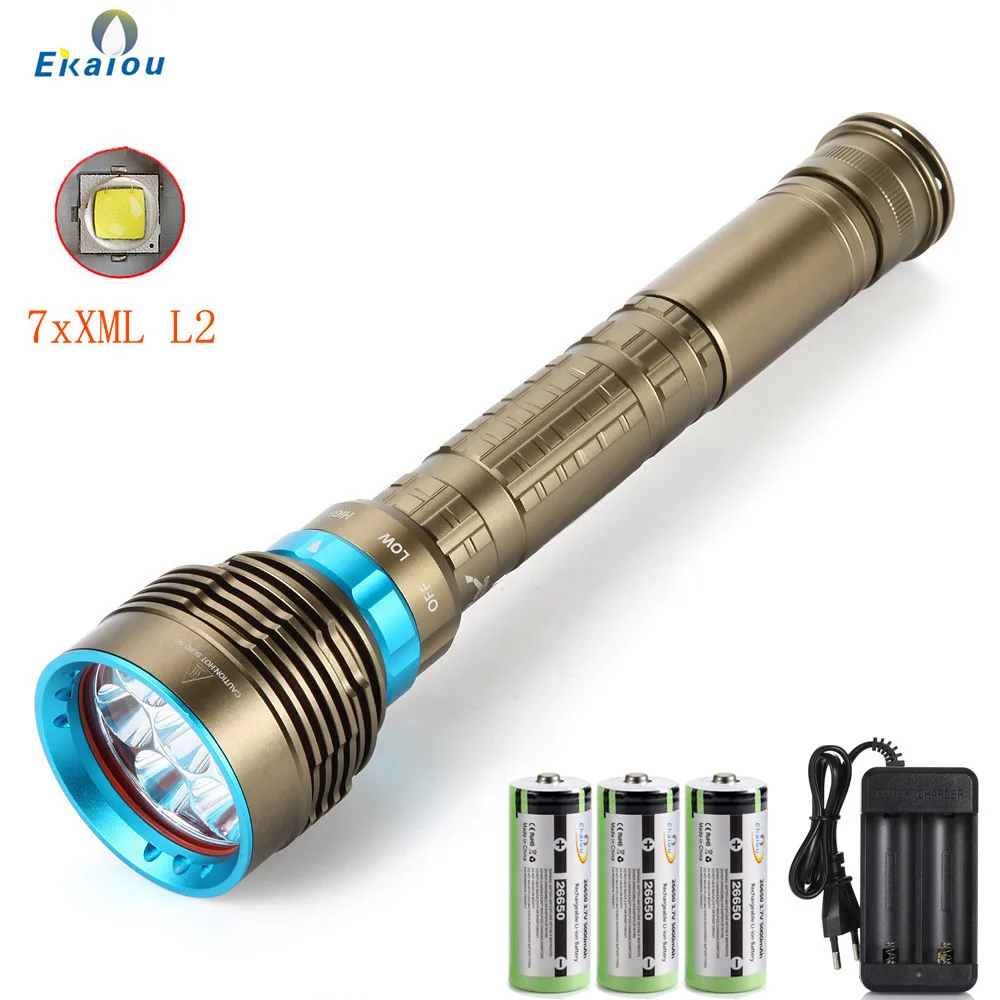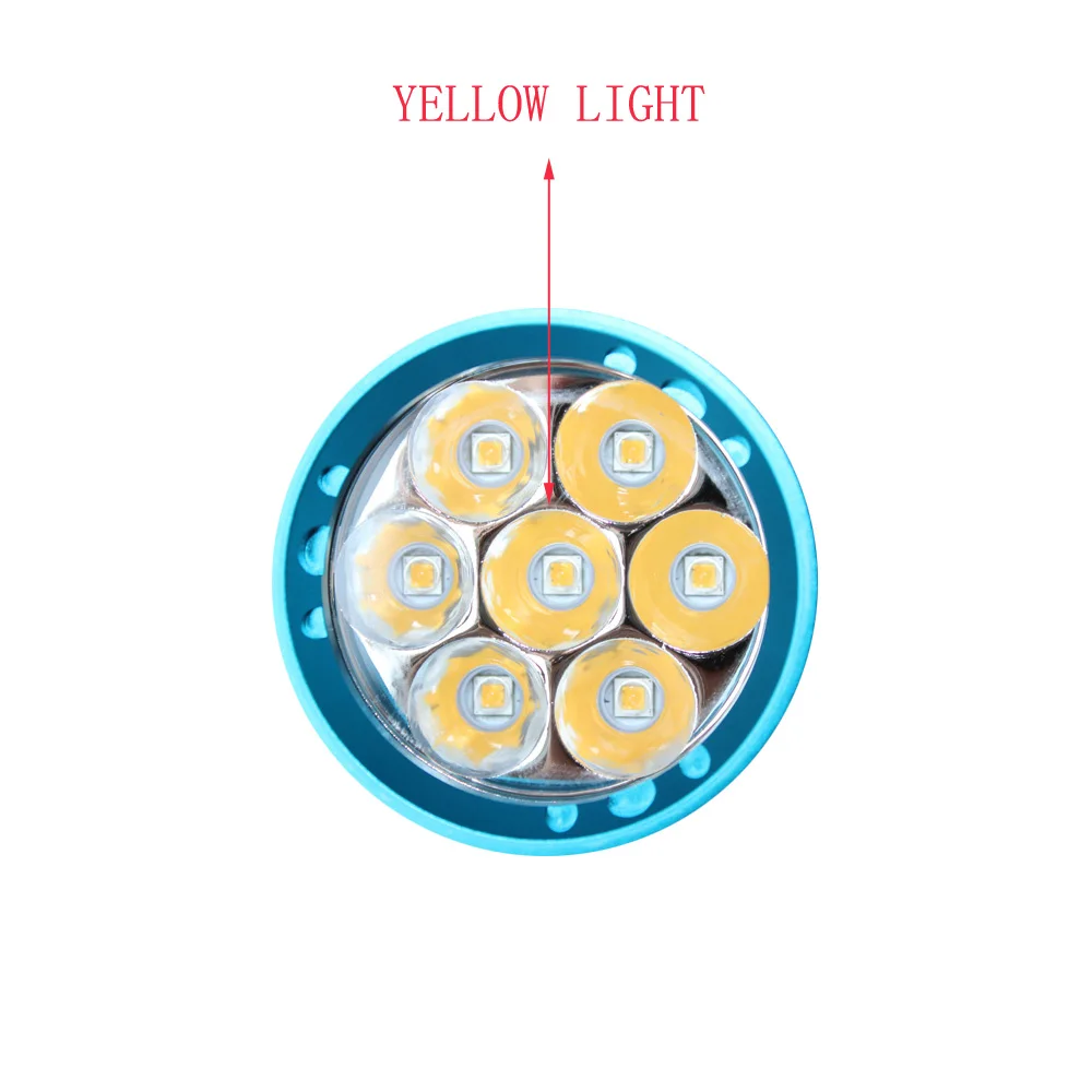 Вспышка для дайвинга, 100 м, 7xXM-L2, светодиодсветодиодный, водонепроницаемая, для дайвинга, белый светильник желтый светильник, лампа для дайвинга, использование батареи 3x2665 0
