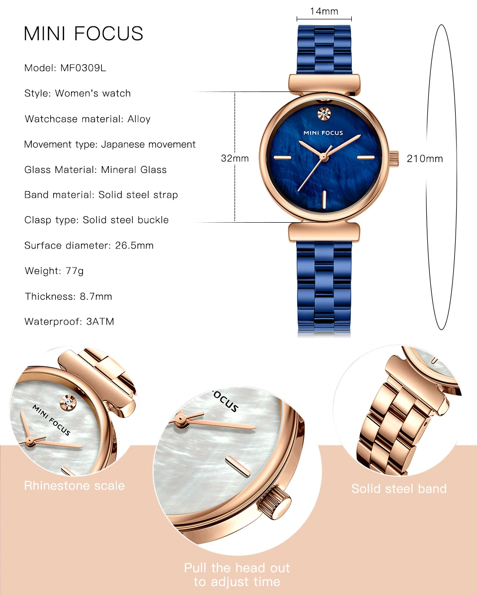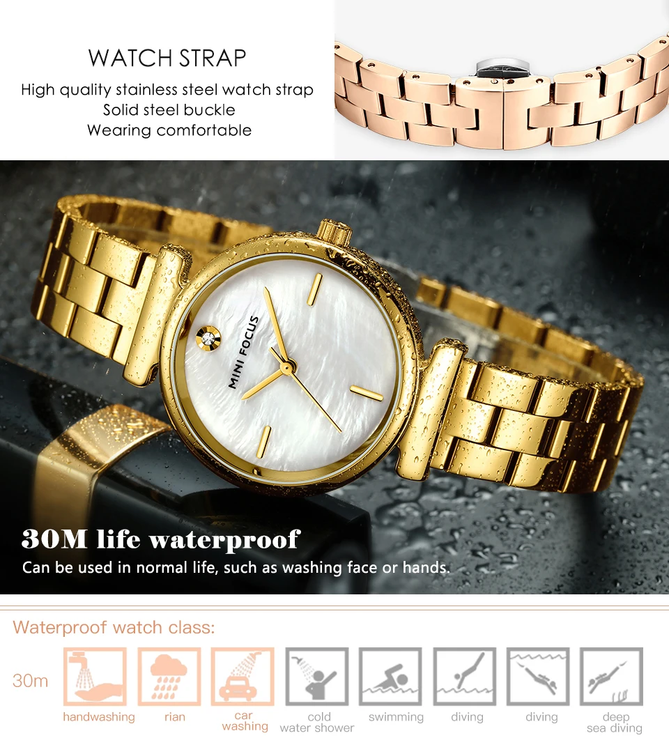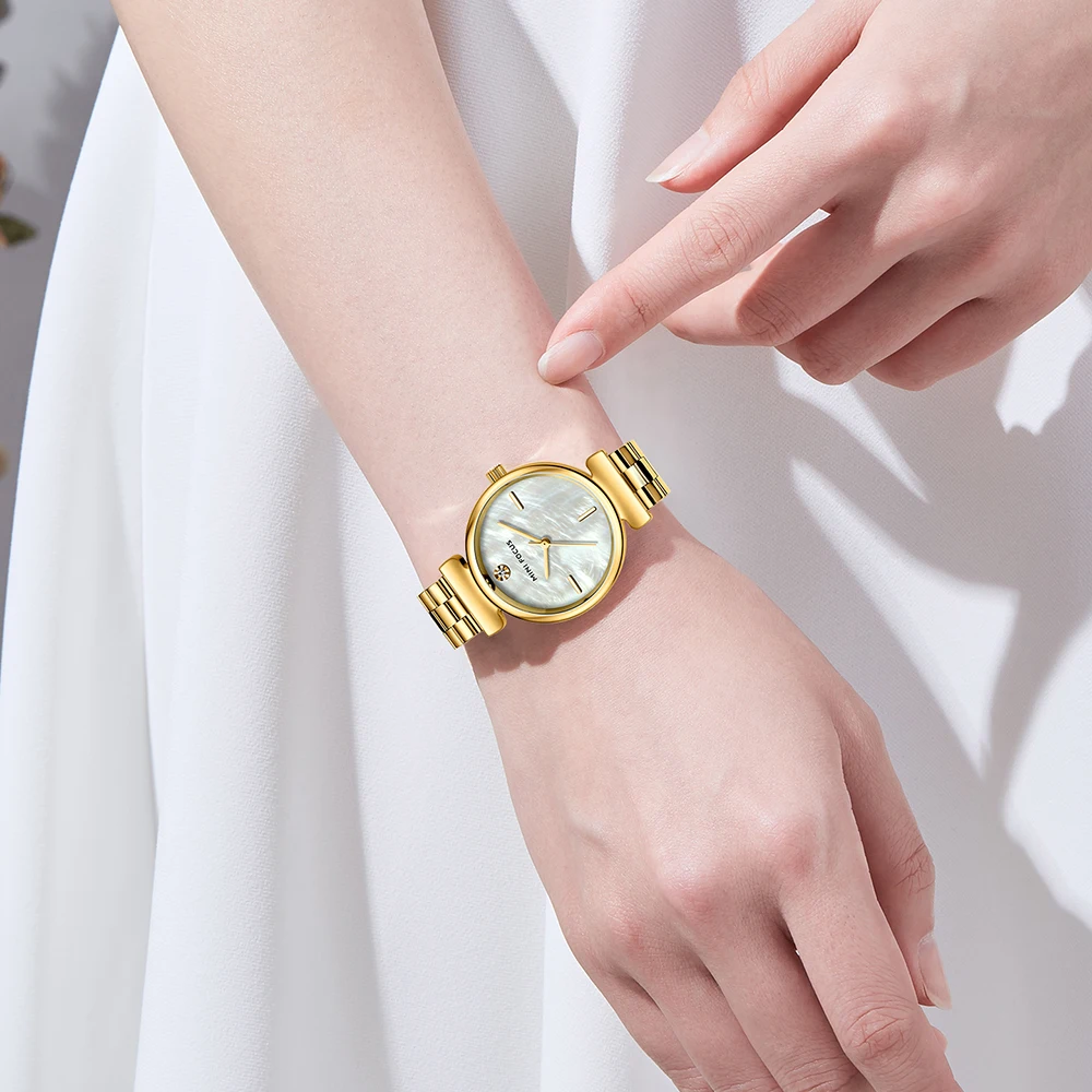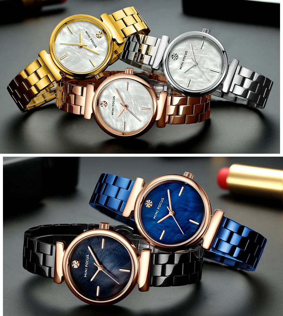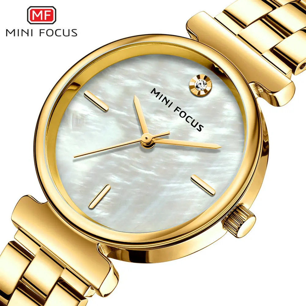 Часы наручные MINIFOCUS женские кварцевые аналоговые, брендовые люксовые золотистые, с ремешком из нержавеющей стали