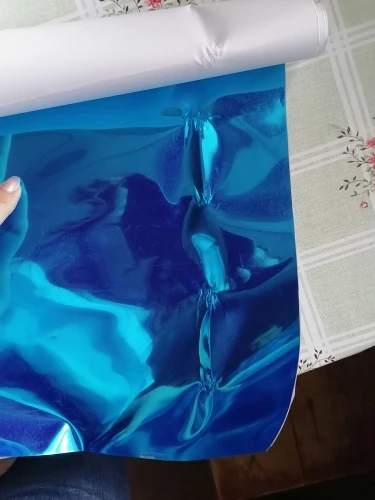 Подойдёт только для аттракциона кривых зеркал. Малейшие изгибы при пересылке оставили следы в виде ямок, которые не возможно убрать. Но, кроме этого, волны на пленке, видимо фабричный брак, делают невозможным что либо рассмотреть в отражении. Жаль, задумка не плохая.